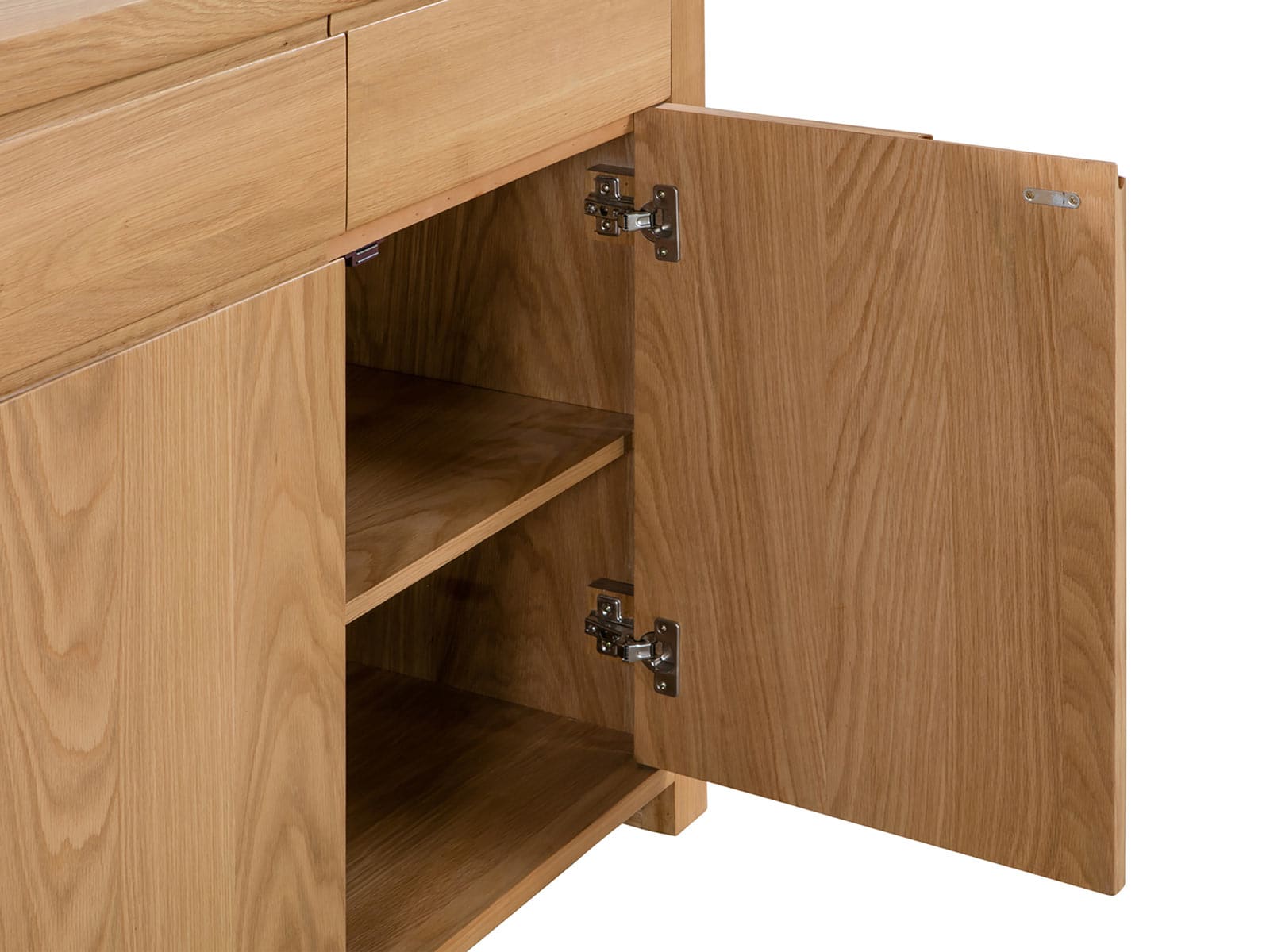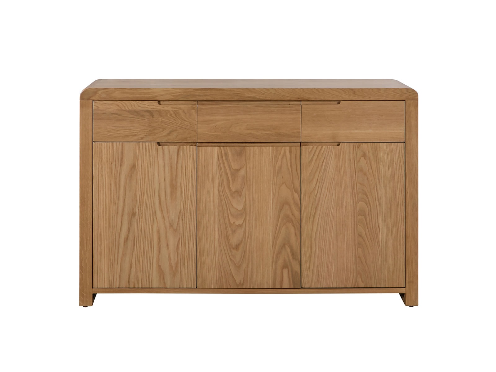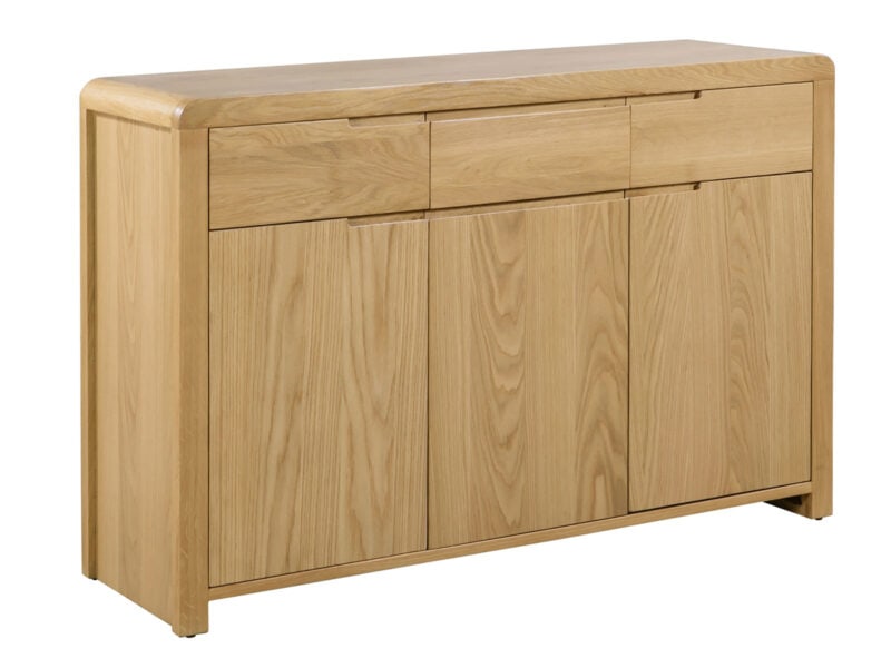 Crafted from solid oak and oak veneers, the Curve combines clean lines with a gentle curved ediging, adding a modern, retro feel to any dining area. The Curve Sideboard provides great storage with three drawers and three doors, perfect for the kitchen, dining, or living room. Part of the Julian Bowen Curve Dining and Occaional Collection