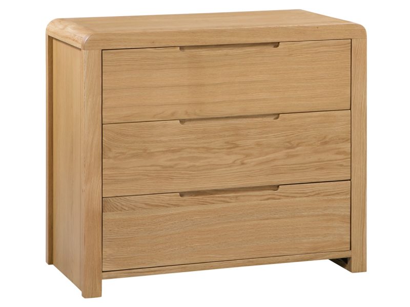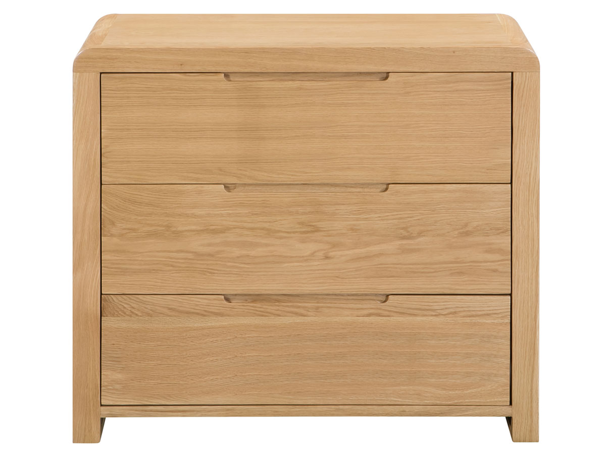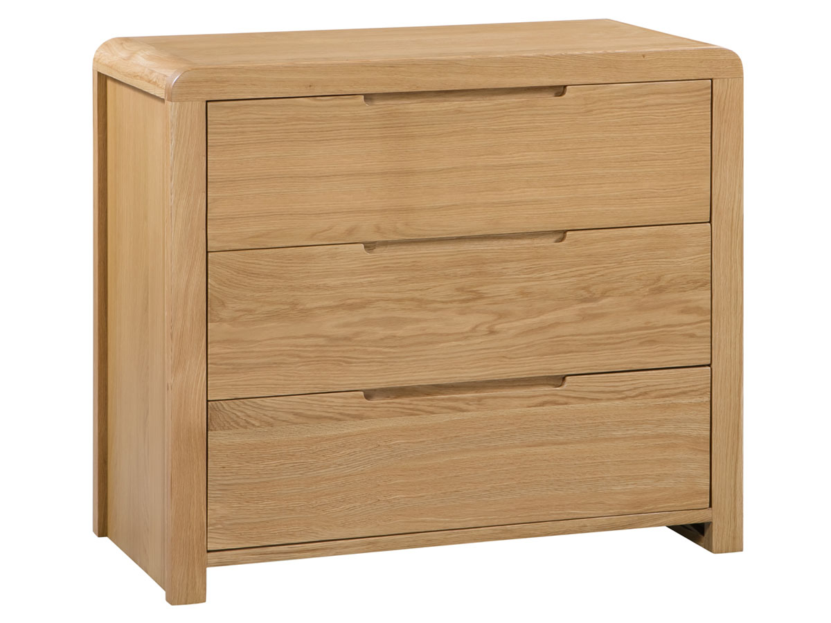 Crafted from solid white oak and oak veneers, the Curve combines clean lines with a gentle curved edging, adding a stunning touch to any bedroom. Recessed handles enable easy opening and a modern feel. This Curve chest features three large drawers, perfect for extra storage. Part of the extensive Curve bedroom range from Julian Bowen