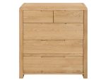 Crafted from solid white oak and oak veneers, the Curve combines clean lines with a gentle curved edging, adding a stunning touch to any bedroom. Recessed handles enable easy opening and a modern feel. This Curve chest features three large and two small drawers, perfect for extra storage. Part of the extensive Curve bedroom range from Julian Bowen
