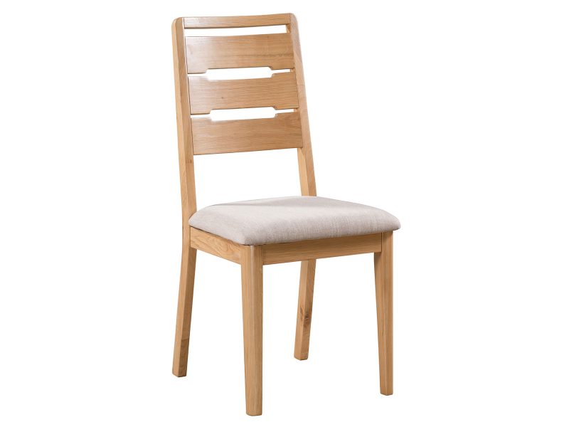 Crafted from solid oak and oak veneers, the Curve combines clean lines with a gentle curved edging, adding a modern, retro feel to any dining area. Featuring a cut-out back to mimic the recessed handles the range has, the Curve Dining Chair features a padded linen seat, allowing you and your guests to reach maximum comfort