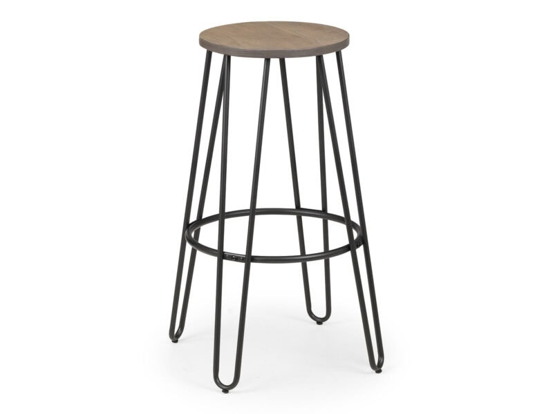 The Dalston Bar Stool features hair pin legs giving a modern, industrial look to any room. Crafted from solid Elm wood and Satin Black powder coated steel, this bar stool offers a durable, sturdy space-saving construction. Pair up with the matching Dalston Round Bar Table for an industrial bar set.