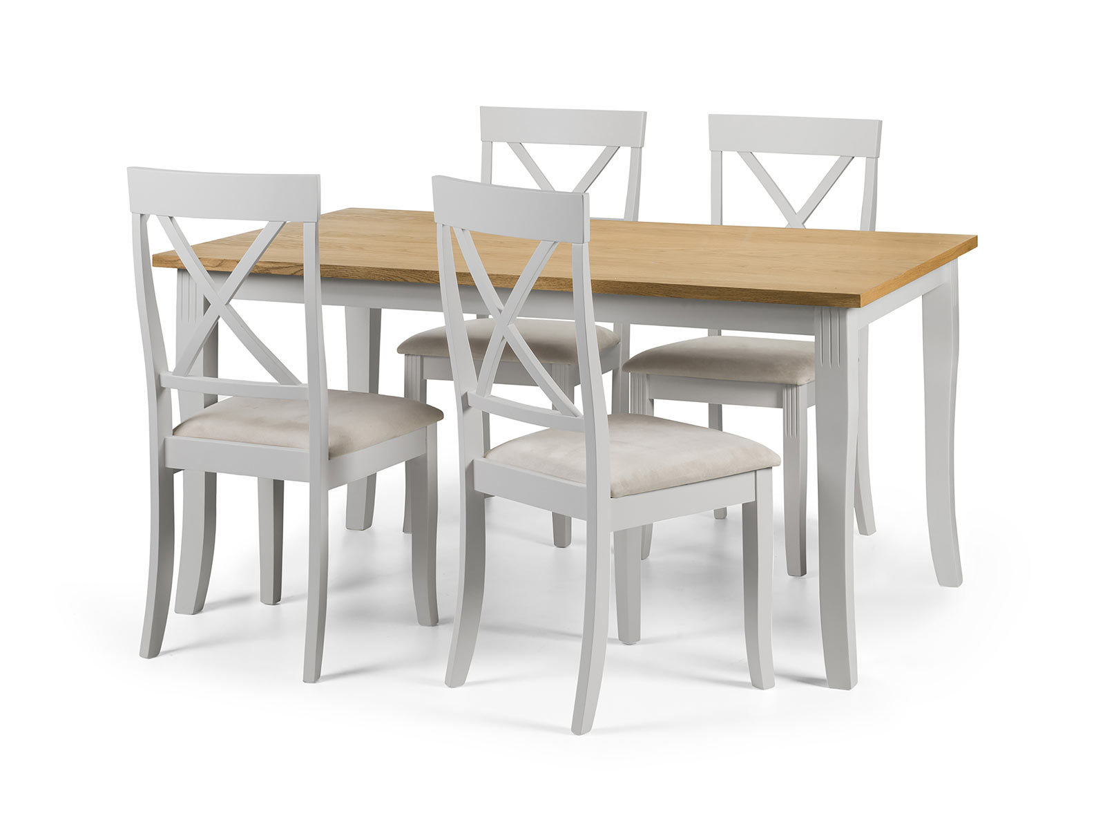 Crafted from solid rubberwood and a real oiled oak veneer 25mm top, this is the ideal dining table to please your dinner guests. In an elegant grey lacquered finish, suitable for any dining room décor. A wide range of co-ordinating items are available in the Julian Bowen Davenport collection.