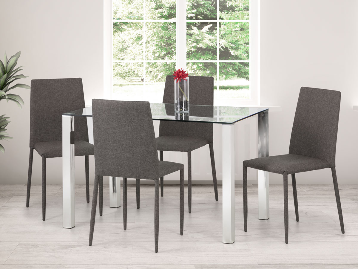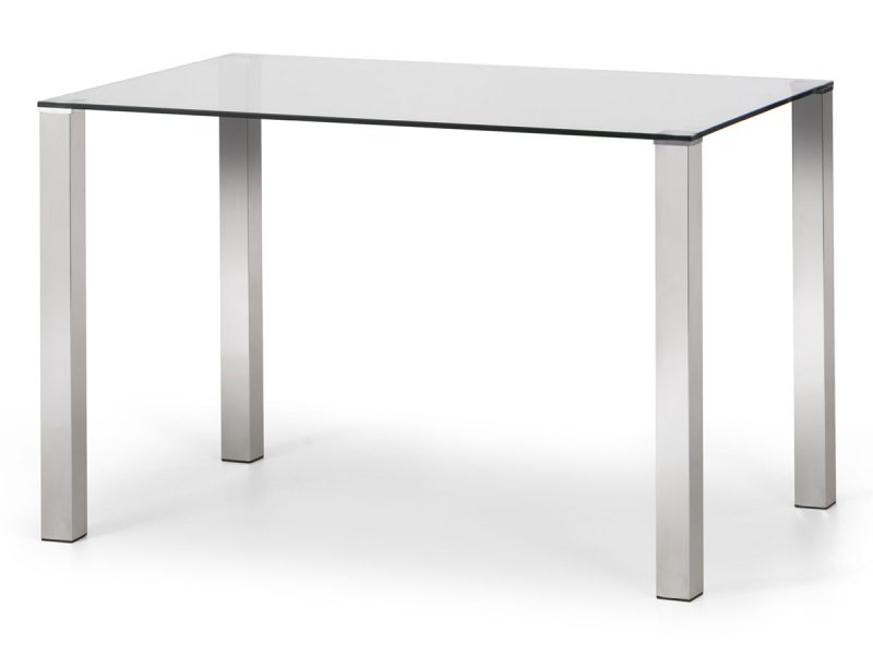 The Enzo is a contemporary and compact chrome and tempered glass dining table that is perfect for modern living. The clean and crisp finish˜forms a versatile look that fits with a variety of different dining chair’styles.