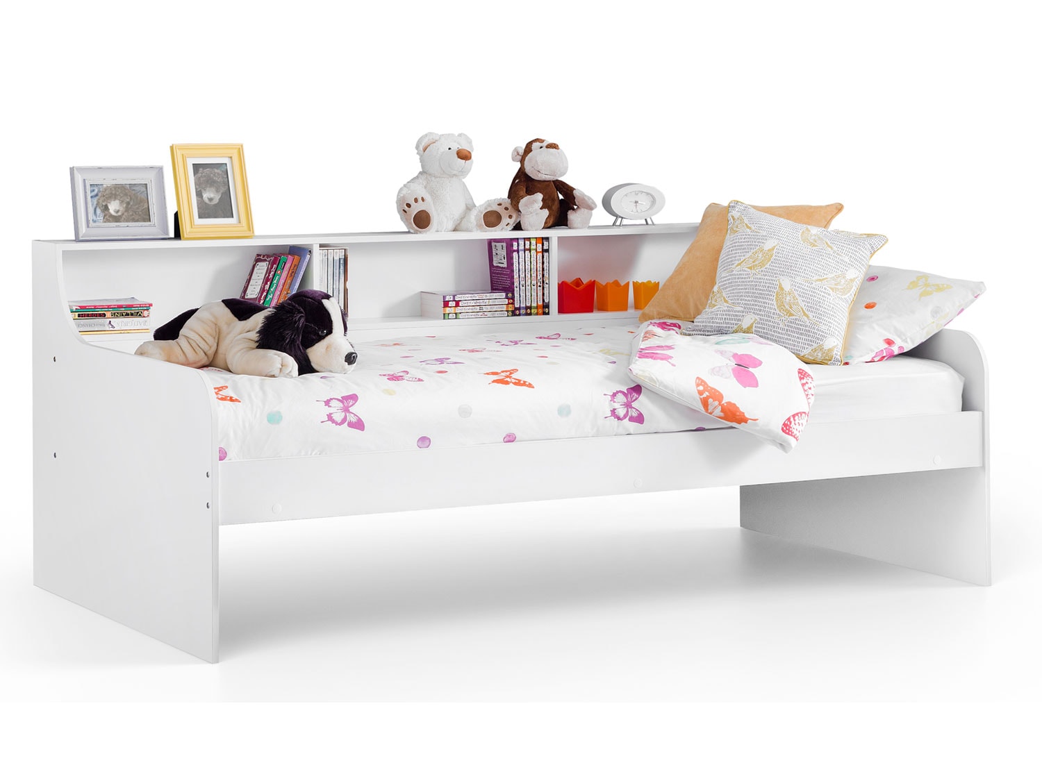 Grace is a stunning pure white daybed which offers great functionality for both children’s rooms and elsewhere. The sleek curved design incorporates copious handy shelving, and when combined with the Ellie Underbed provides enormous amounts of underbed storage or the option of an extra sleeping surface.
