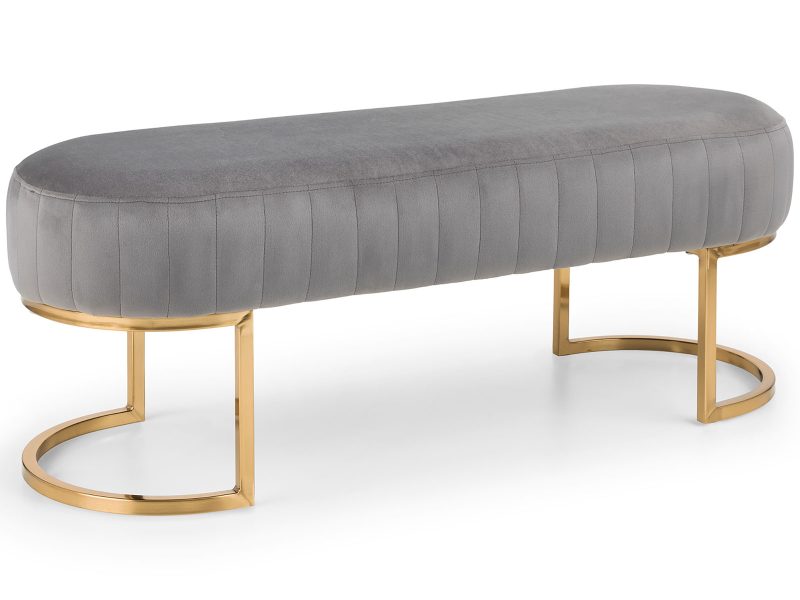 Designed in a luxury velvet, our Harrogate bench features an elegant, unique design that fits beautifully amongst a large range of interior décor styles. The contrast of the slick gold legs make this piece versatile, yet classy. Whether placed in the bedroom, or part of the hallway, this piece is sure to be a showstopper in any home.