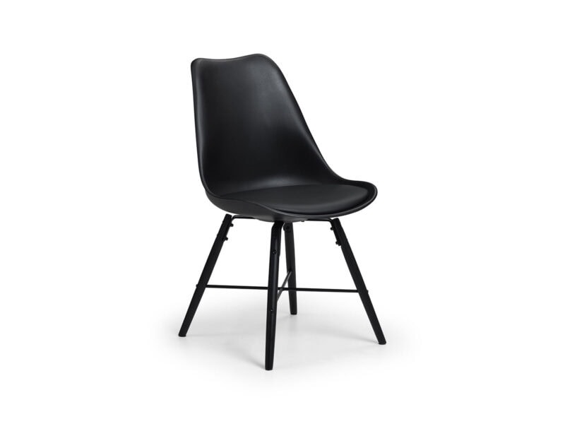 The Kari Dining Chair features a curved design that conforms to the natural curve of the spine, paired with a high-quality padded seat allowing you to reach maximum comfort. Featuring a black, easily-cleaned seat and black legs, with an steel cross bar giving this chair a modern industrial feel. Available in three colour options.