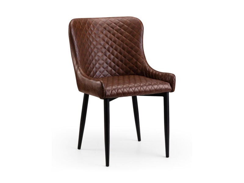 Combining a classic style with a modern twist, the Luxe dining chair is beautifully upholstered in faux leather with luxurious quilted detailing. Featuring contemporary black painted legs, this dining chair adds an industrial feel to any dining area.