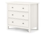 Maine is an elegant New England style range of bedroom furniture. The combination of exquisite surf white lacquered finish with characteristic side panelling and detailed chamfered cabinetry makes for a soothing and refined aesthetic with timeless appeal, while delicate pewter handles add the perfect finishing touch. The Maine 3 drawer chest offers three large storage drawers.