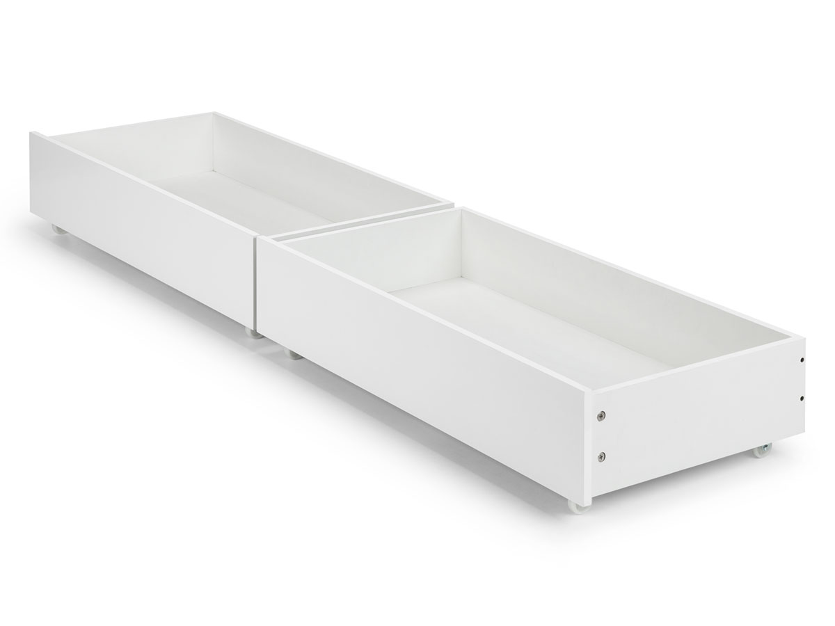 The Set of 2 Manhattan Underbed Drawers are available for extra storage for the Manhattan Bookcase Bed. Finished in a white high gloss, these drawers are on casters that can be pulled out at ease.