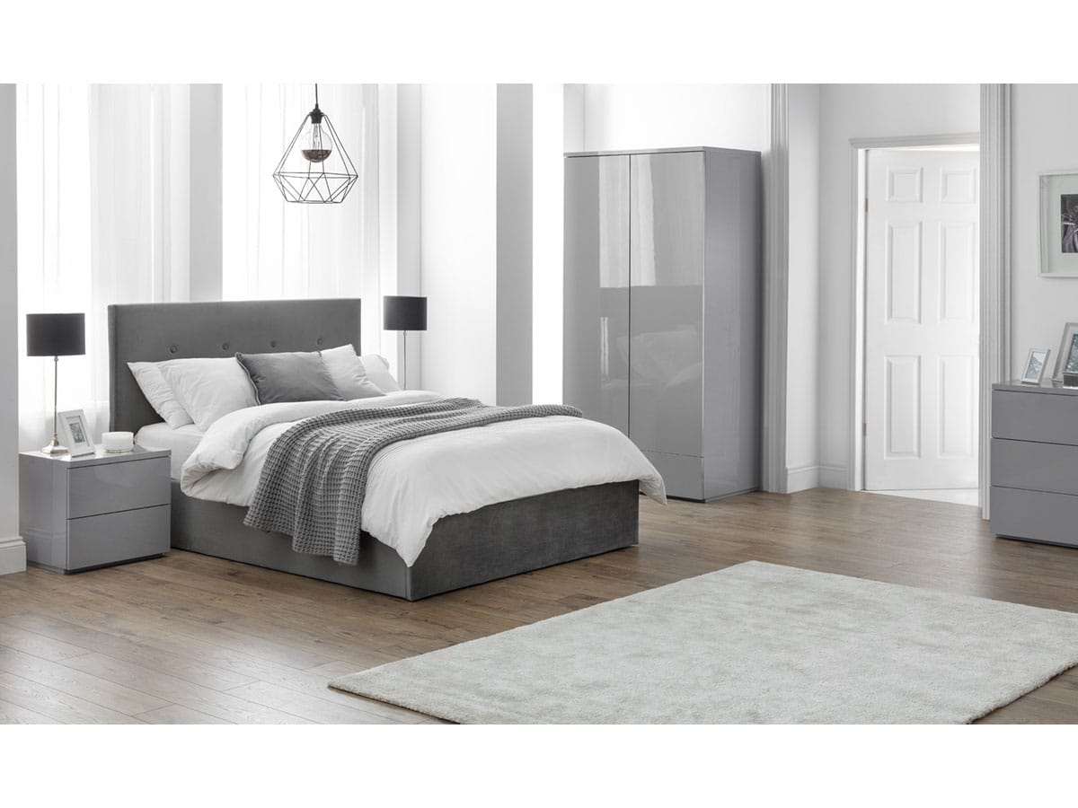 The Monaco Bedroom Collection brings a fresh, modern design to any bedroom. Finished in a grey high gloss, this 2 drawer bedside reflects light, enhancing the look of space. Featuring clean lines, to create a clean contemporay image. Part of the Julian Bowen Monaco Bedroom Collection.