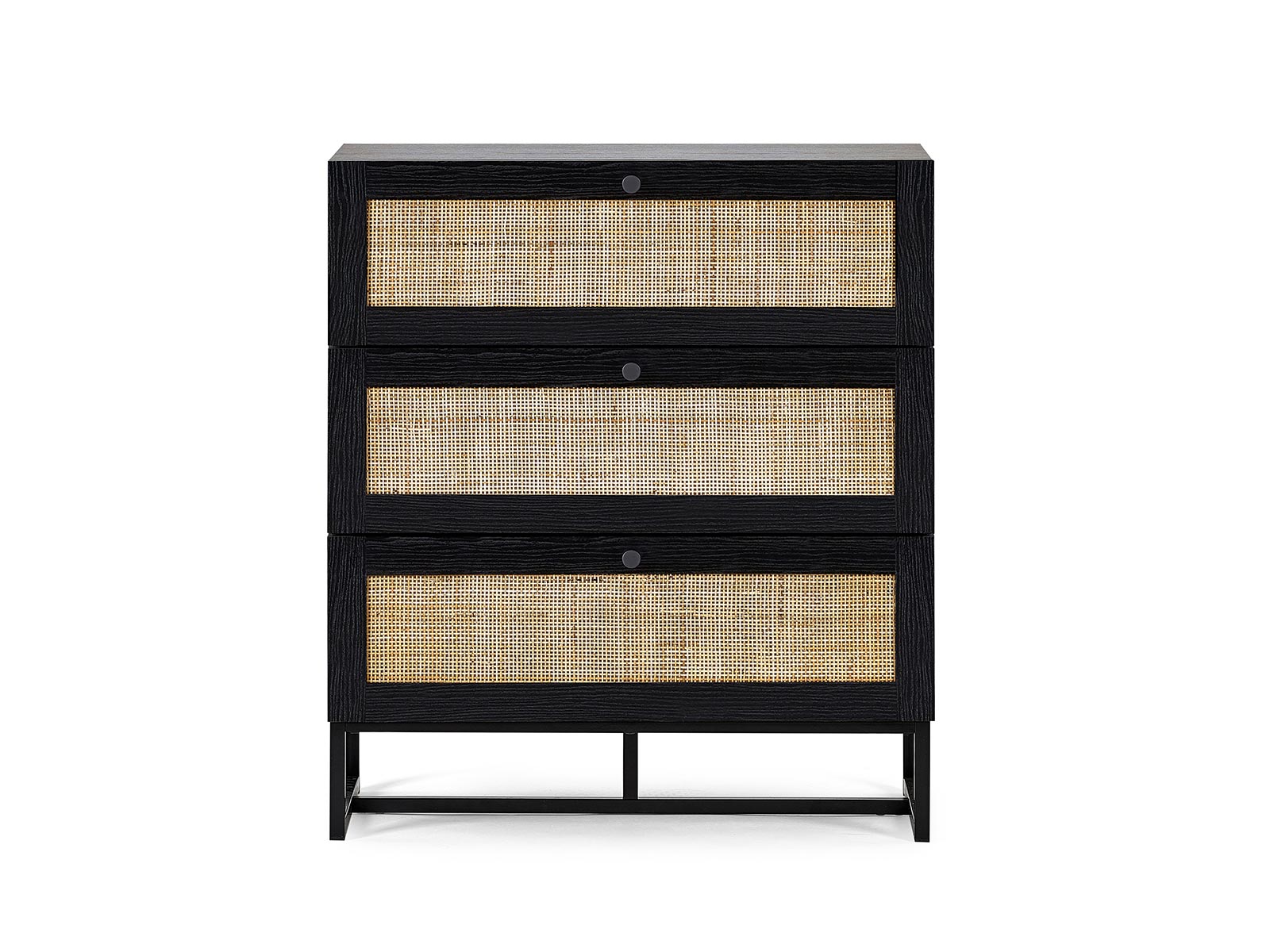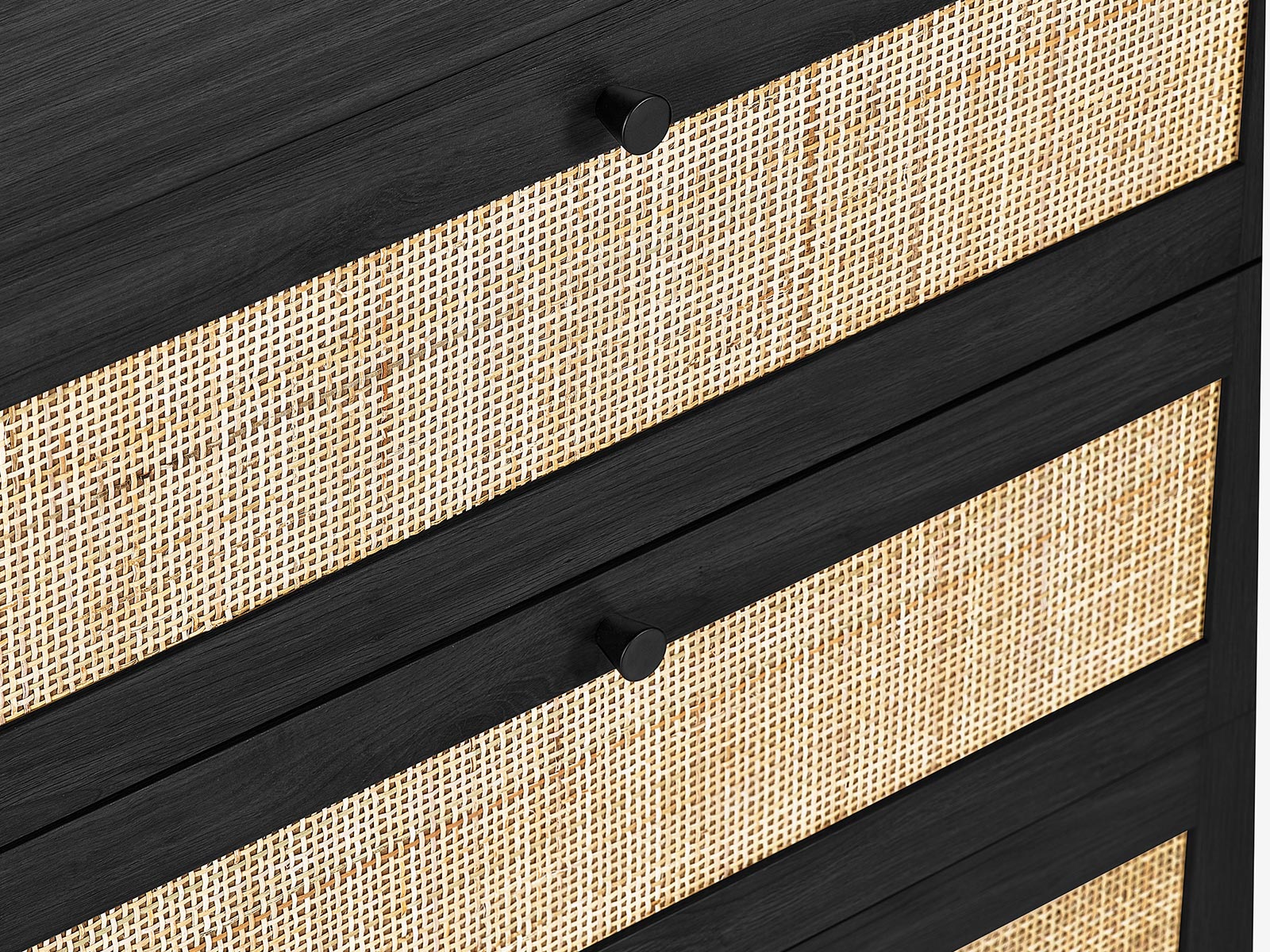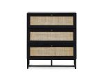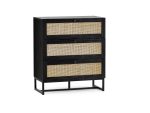 Fusing modern construction with retro design elements, the Padstow collection will exquisitely complement any styled home. The natural rattan fronts and industrial-style base collaborate perfectly to leave a warm yet chic aesthetic in your home. This range includes a bedside, 3 drawer chest, 6 drawer chest, wardrobe, coffee table, TV unit, sideboard, and tall bookcase. Also available in an oak finish.