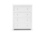 Boasting clean, simple lines the Radley 4 drawer chest is perfectly suited for both modern or traditional styles. Featuring four generously sized drawers to store away bulkier clothing. Finished in a surf white lacquer, with delicate silver handles, the Radley Bedroom Collection is perfect for adult and kids bedrooms.