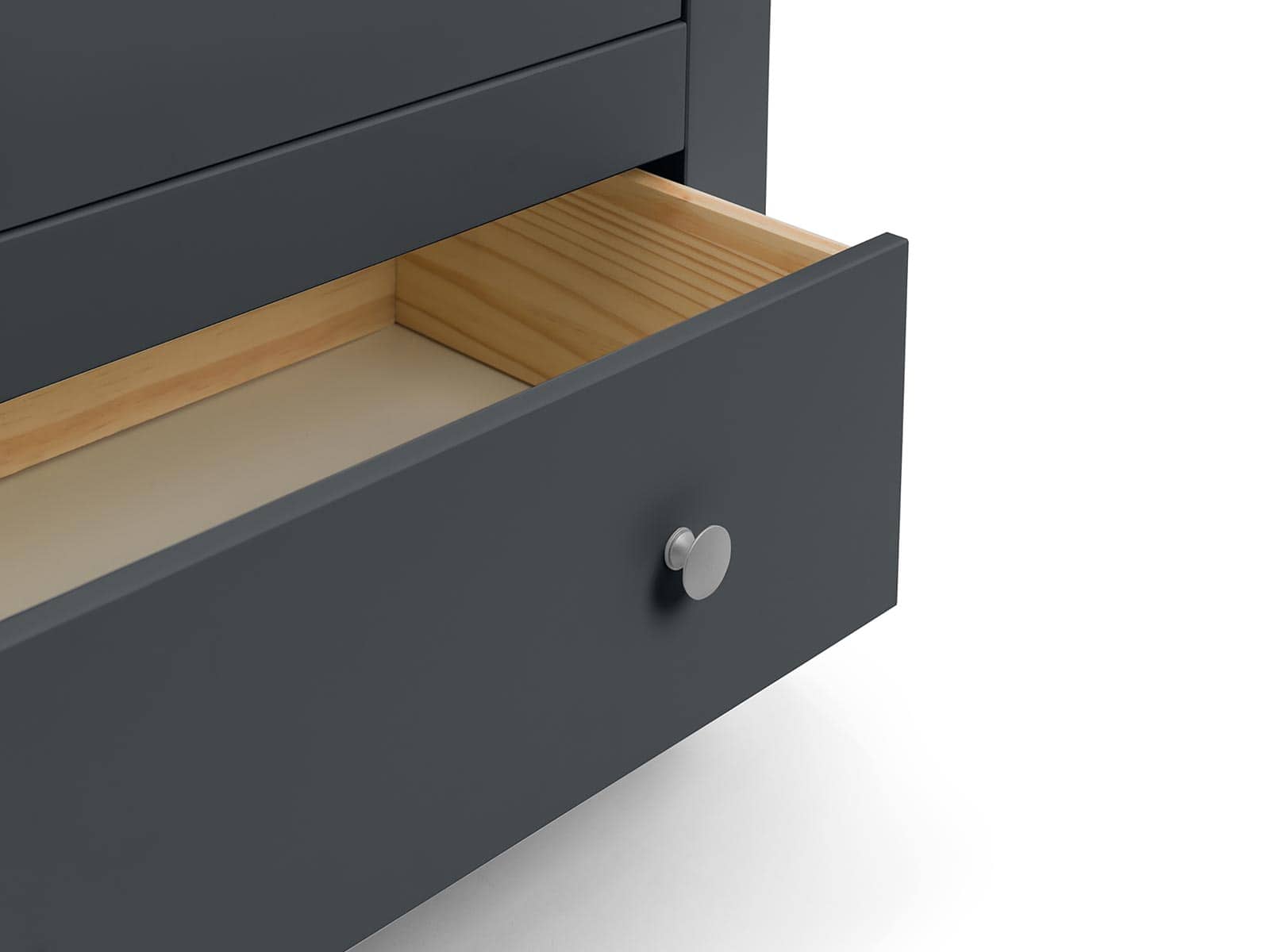 Boasting clean, simple lines the Radley wardrobe is perfectly suited for both modern or traditional styles. Featuring a hanging rail behind 2 doors, and an addiitonal storage drawer to store your clothes away neatly. Finished in an anthracite lacquer, with delicate silver handles, the Radley Bedroom Collection is perfect for adult and kids bedrooms.