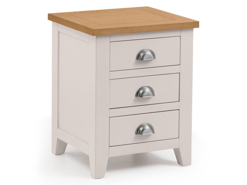 Finished in a elephant grey lacquer, the Richmond bedroom range is a timeless, elegant design suitable for a wide range of décor. Constructed from white oak and oak veneers, this lacquered bedroom range brings a modern twist on a traditional construction. This 3 drawer bedside consists of three drawers, suitable for those items needed at reach from your bed.
