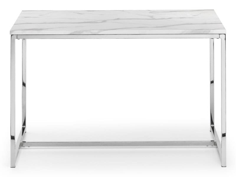 Scala is a sleek dining table with chic marble effect top on a well-crafted stainless steel frame. It has a timeless Italian design that fits well with a wide range of décorative styles. Part of the Julian Bowen Scala Dining and Occasional furniture range.