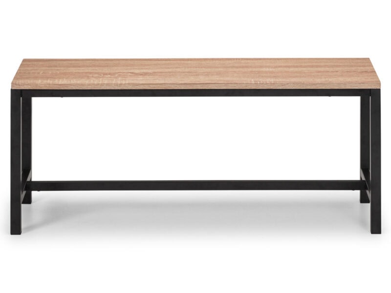 A cool, modern dining bench designed to add a contemporary touch to any dining space. Its simple clean lines, delineated by a subtle, black coated metal frame are complemented perfectly by a warm, sonoma oak foil, to create a very stylish and sleek product. The perfect match for the Tribeca Dining Table, creating a modern atmosphere within your home.