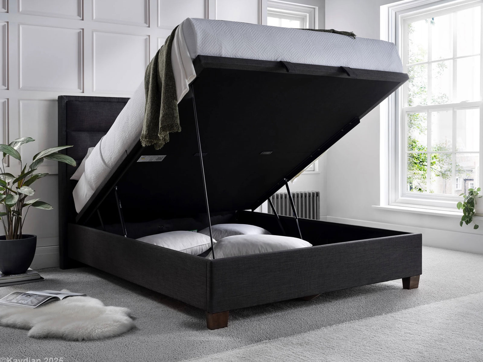 Lift the ventilated platform base to reveal a generous floating floor ottoman storage area that helps keep your bedroom clutter-free. The hydraulic lift system and dual lift-up straps make accessing your storage smooth and effortless, while the added safety bar offers secure and stable support during use.