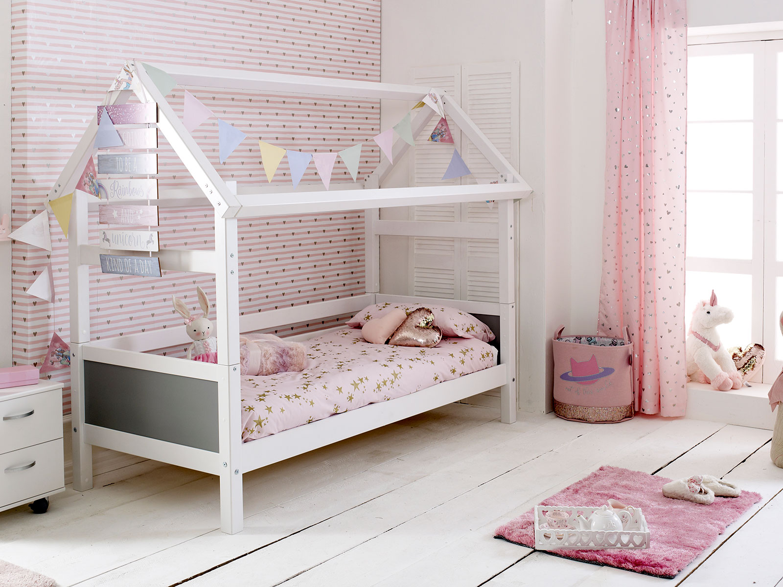 Delight yThe Kids Avenue child with The Kids Avenue beautiful Nordic playhouse 1 bed, a full size bed with an integrated sturdy frame in the shape of a house.