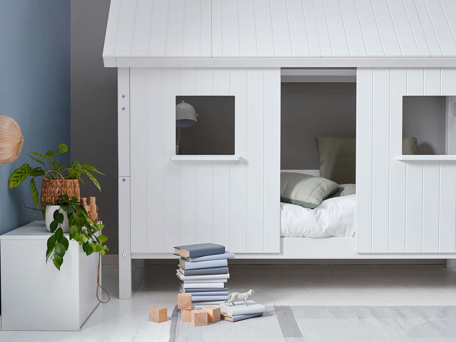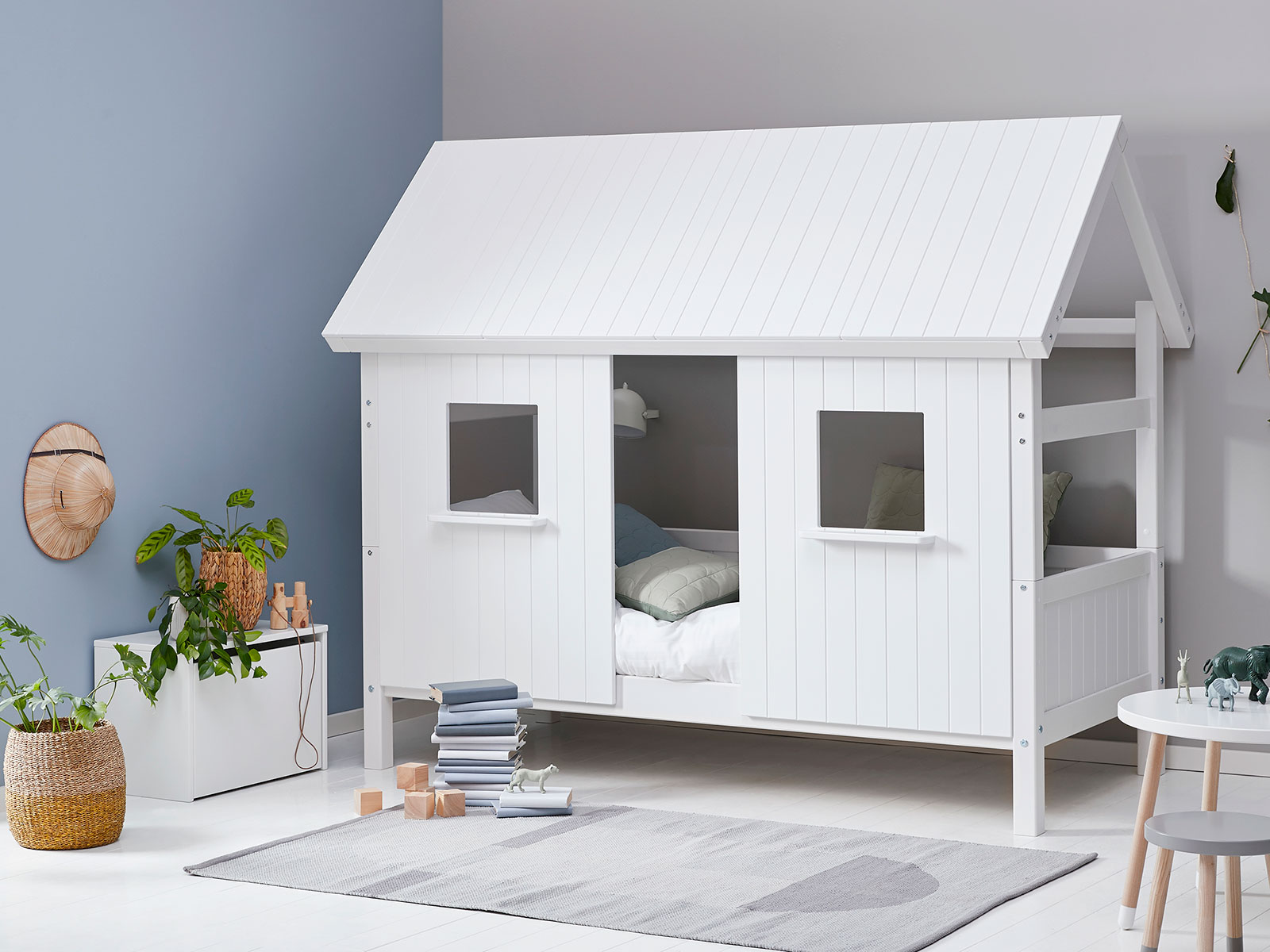Just watch their imagination take over as they cosy up behind the full length house fascade, below the full length roof. Please note the roof section only covers half the bed.