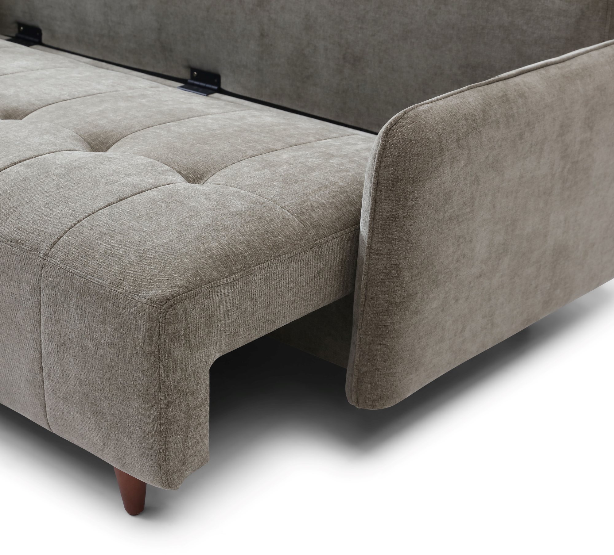 Felix is one of Kyoto’s brand new sofabeds, it comfortably seats three and features a pull out mechanism and a fold down back creating a spacious sleeping area with storage underneath. Felix comes in three soft chenille fabrics, Navy, Washed olive and Terracotta. In stock from April 2025