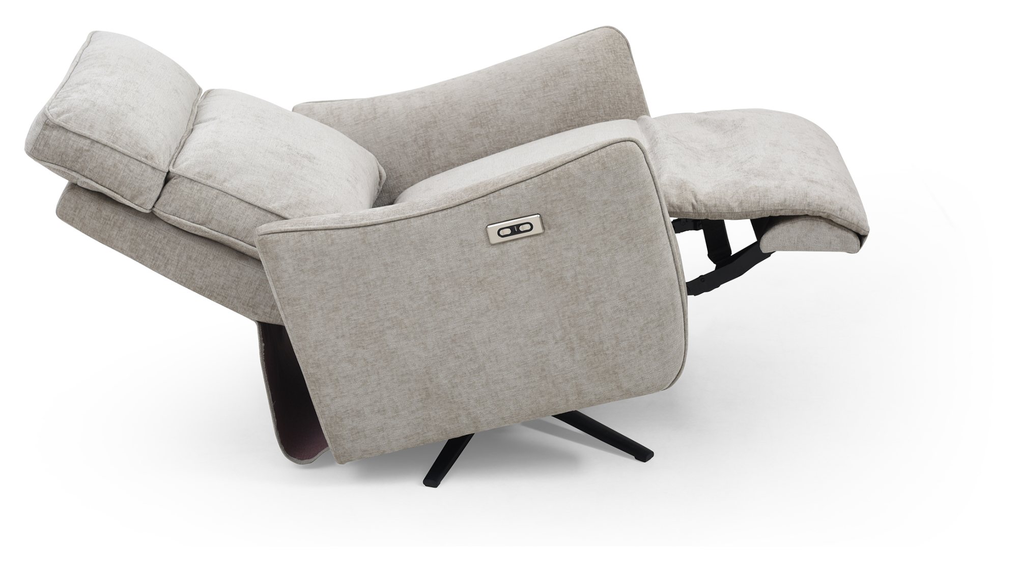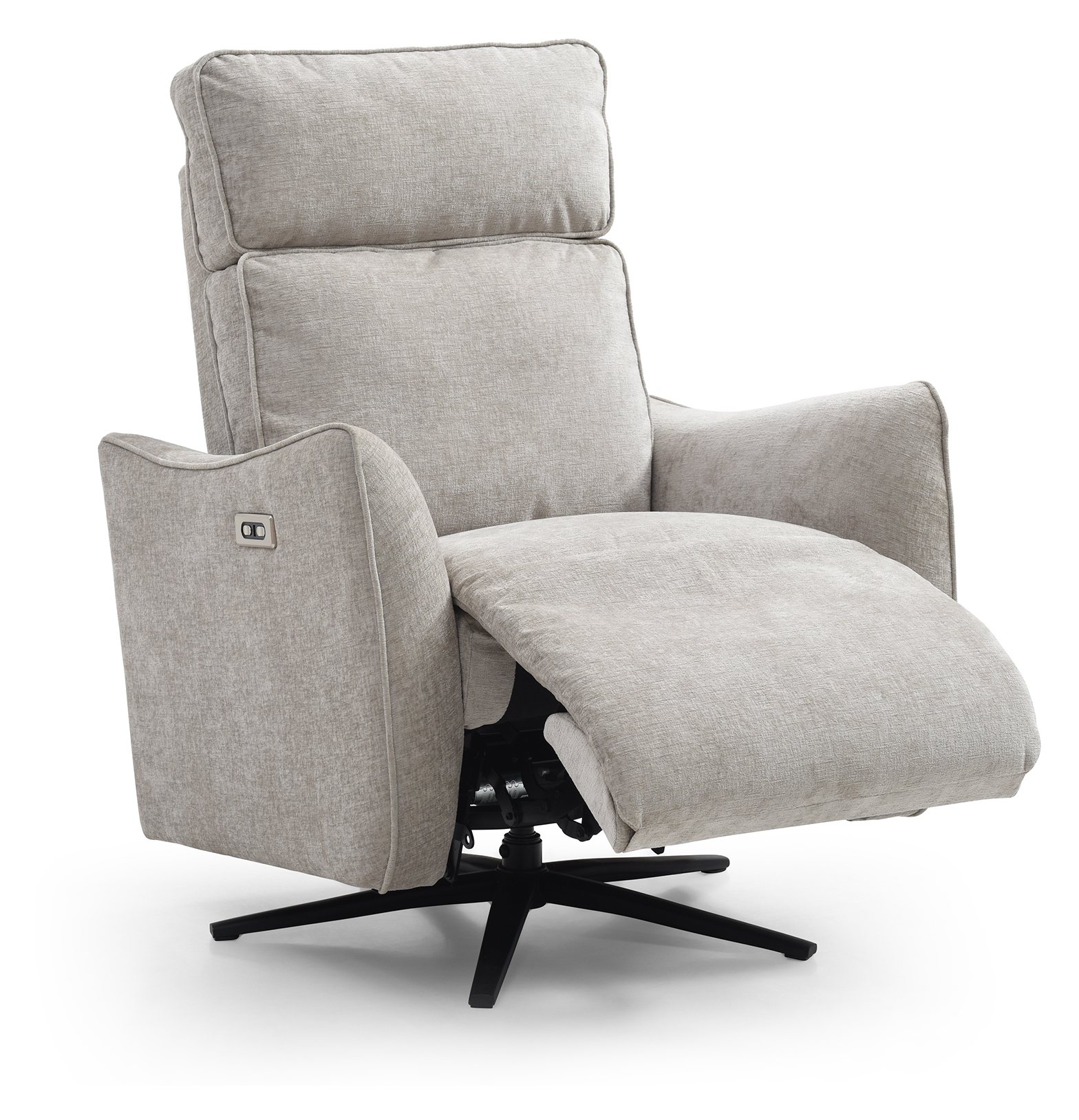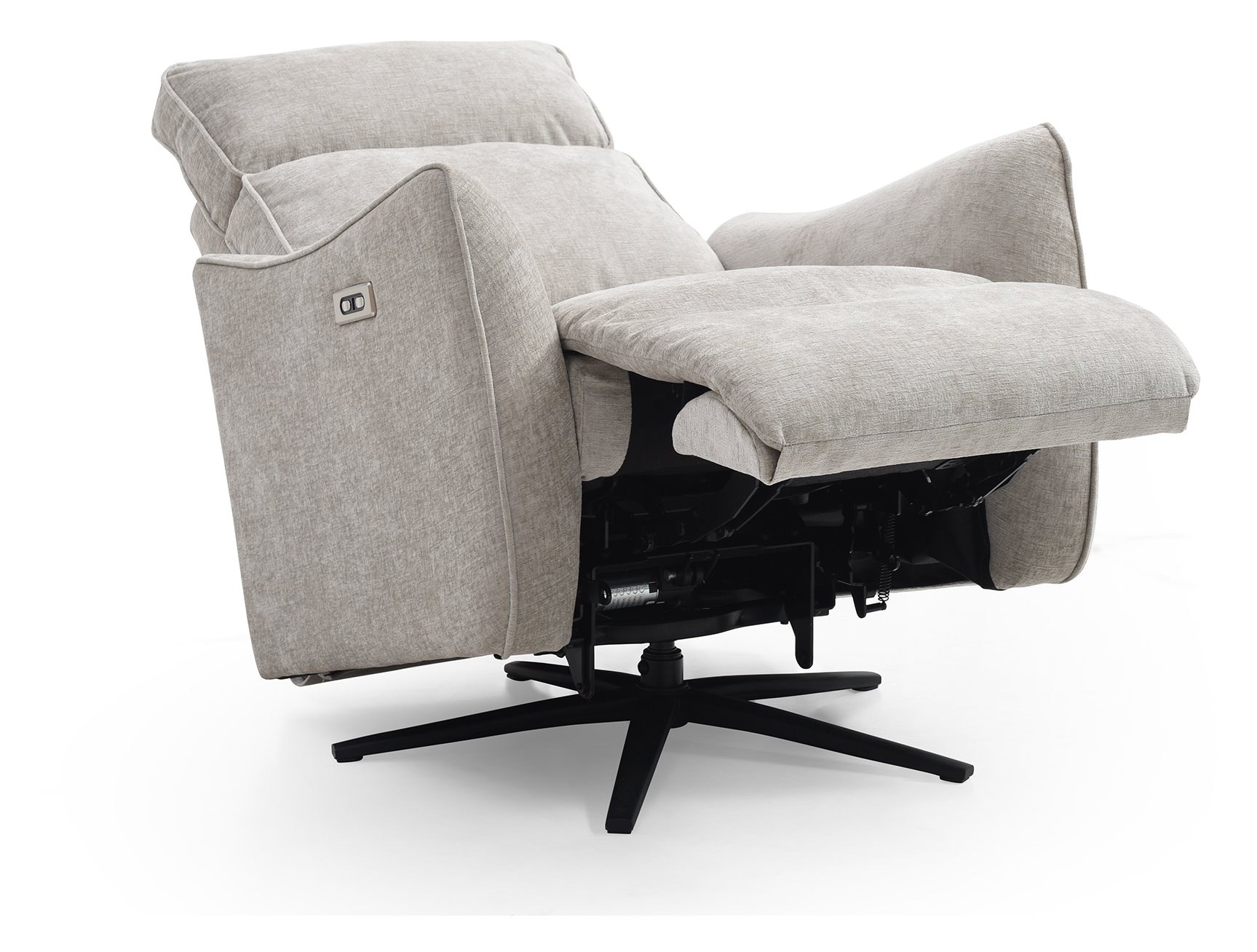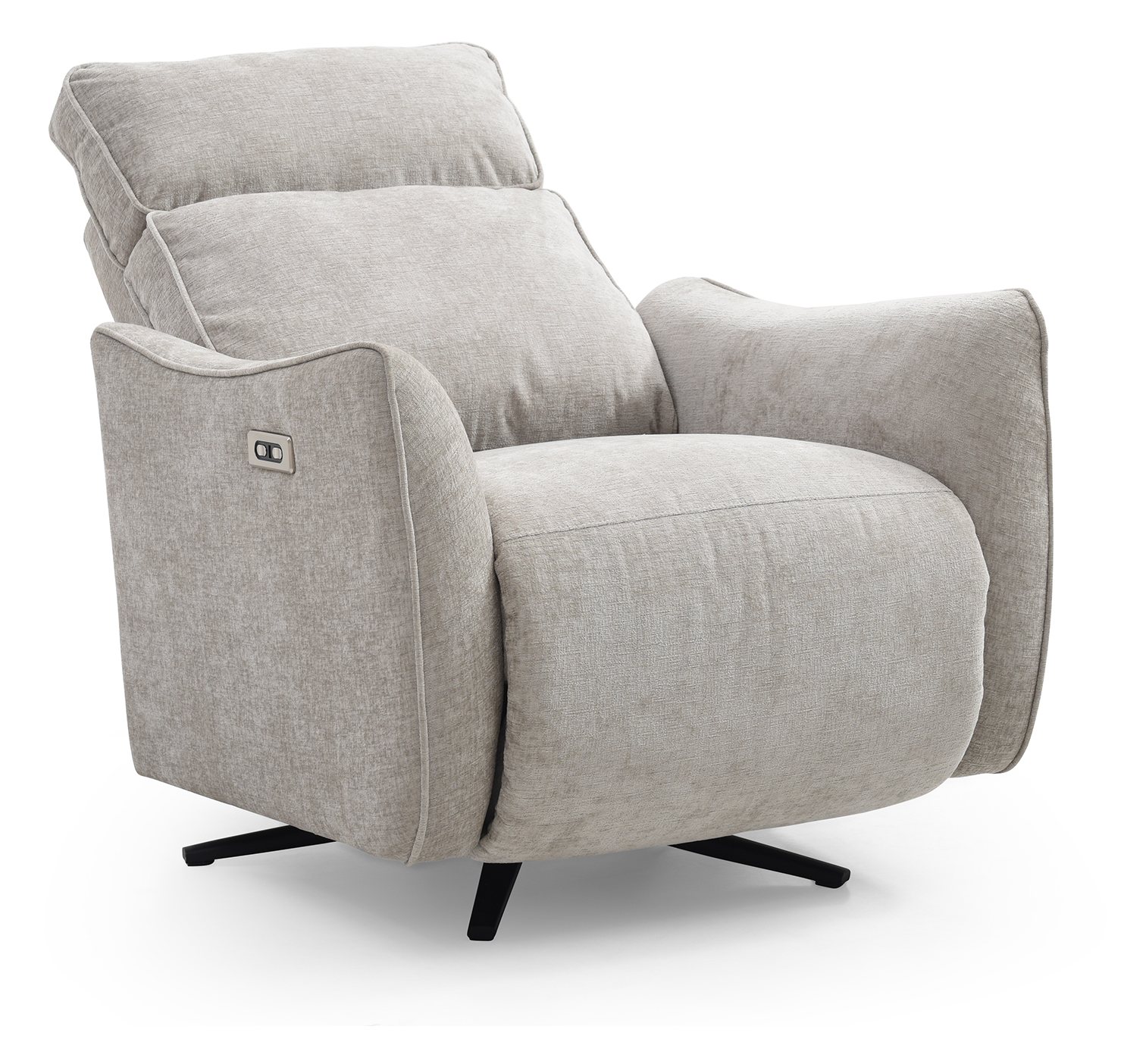 Finn is a new addition to Kyoto’s recliner collection. Key features include an electric recline function, a smooth swivel base, and a plush seat and backrest. The eye-catching, fin-inspired armrests and subtle piping detail add a touch of sophistication. The back and foot rest move independently of each other with buttons. Available in a soft chenille upholstery in Grey and Natural.