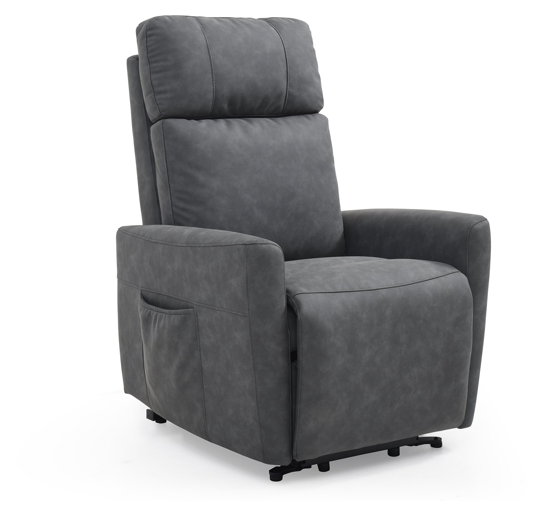 Parker is a rise & recline chair, featuring a deeply padded seat and back for added comfort. The head rest and back move independently from the footrest, and are individually remote operated. This contemporary model is available in a soft PU in Grey.