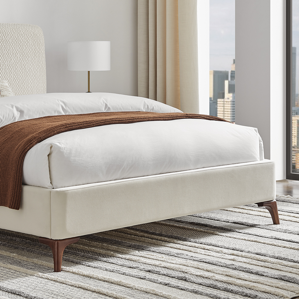 The combination of a quilted fabric headboard and coordinating velvet side rails and footend delivers a cohesive, high-end finish. Its compact proportions make it especially suitable for modern living spaces without compromising on style.