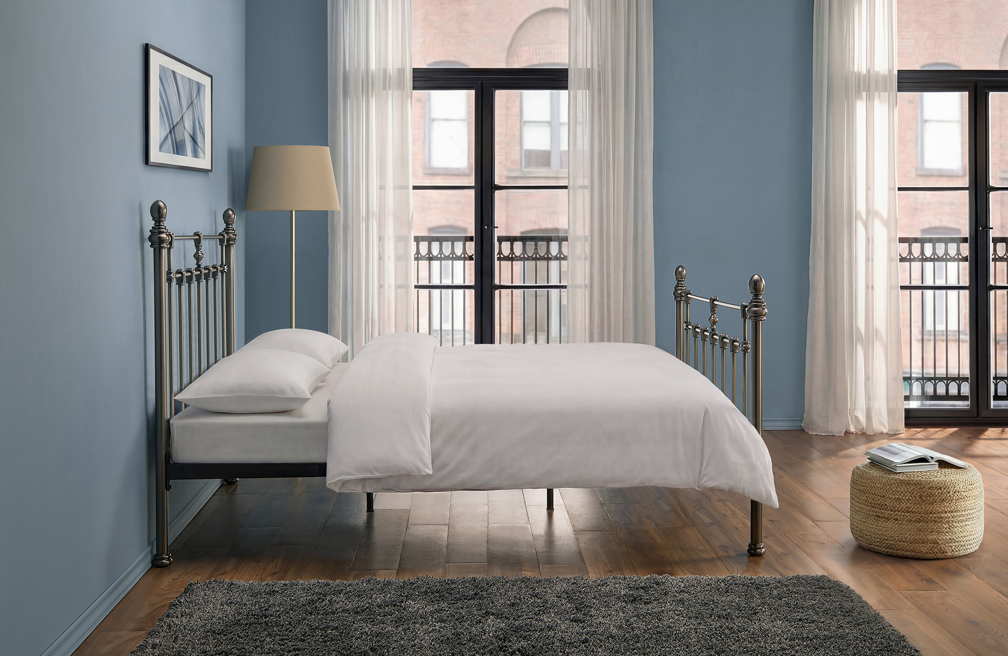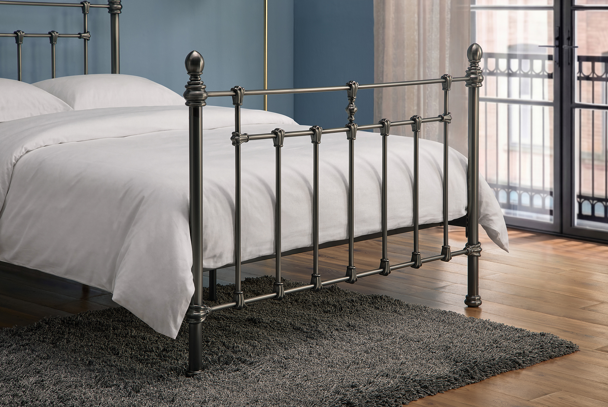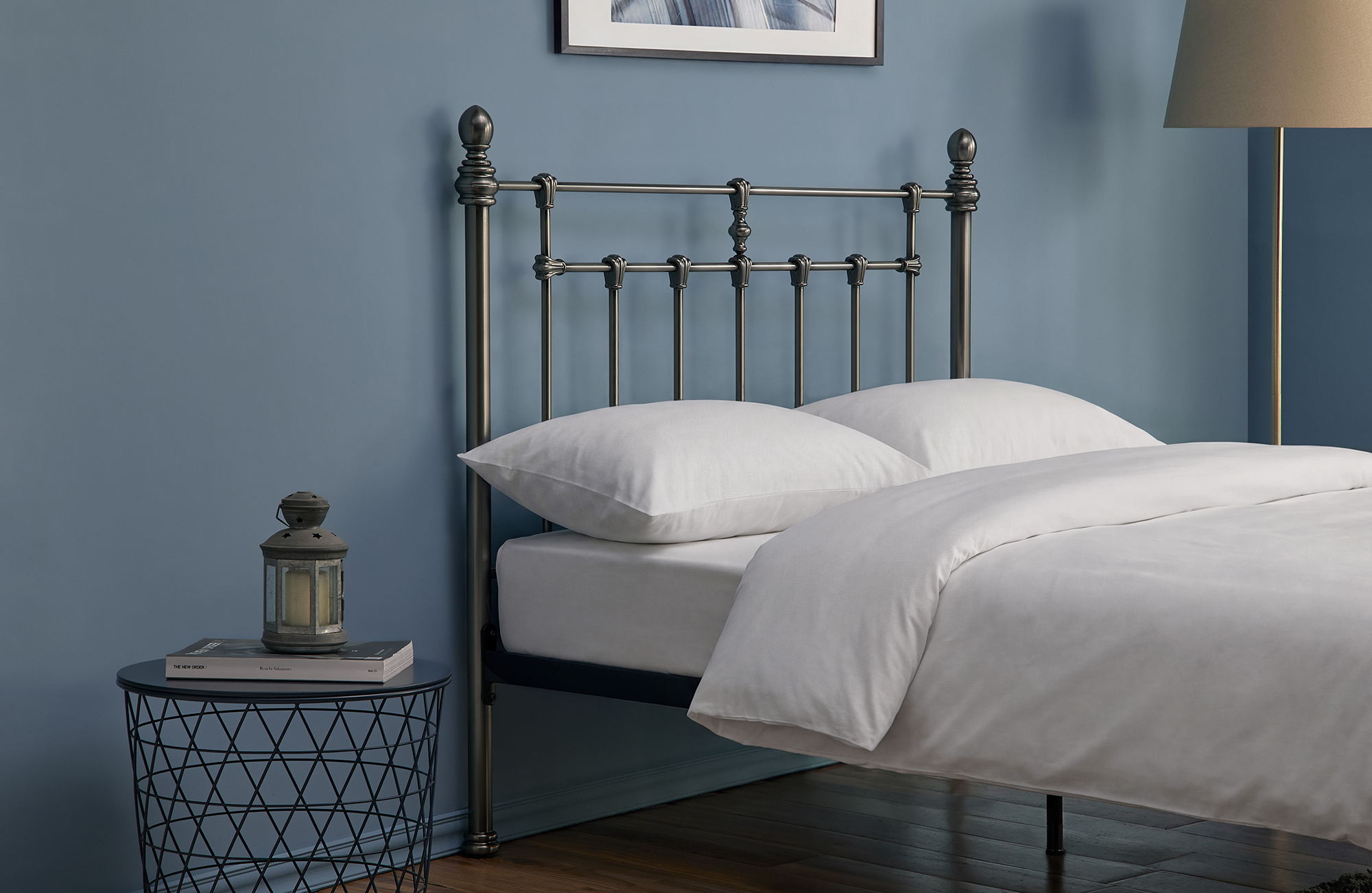 Finished in a sophisticated Misty Black Nickel Brush, the Faye bed offers both durability and elegance, while the sprung slatted base ensures lasting comfort and support.