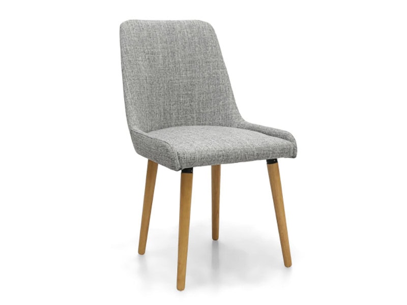 A dining chair with minimal styling that emphasises contemporary living, upholstered in striking grey weave fabric. Sprung seat. Supplied with tapered natural rubberwood legs. Leg assembly required. Sold in boxes of 2.