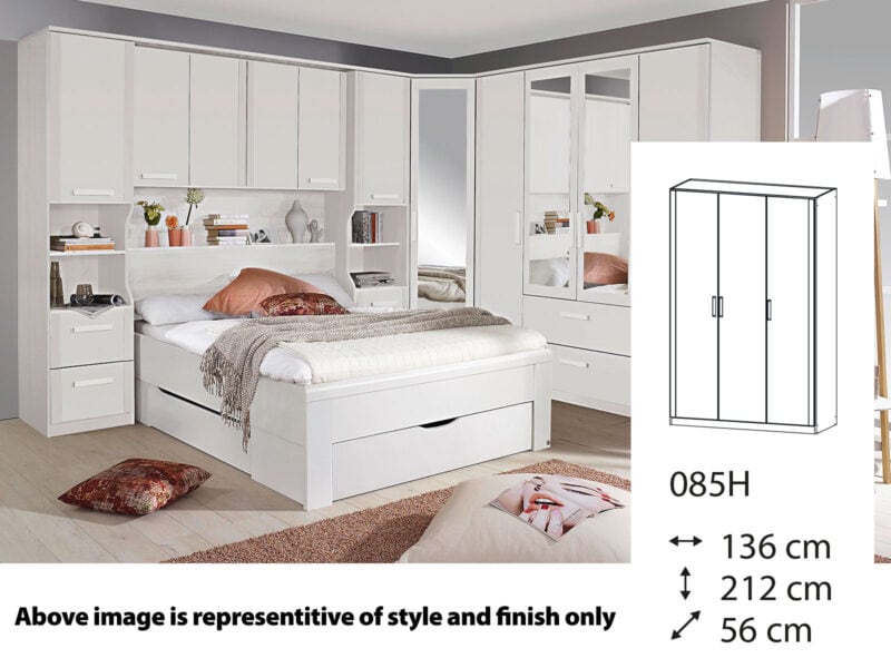 Hinged 3 Door Wardrobe + Cornice 136cm x 212cm – 085H