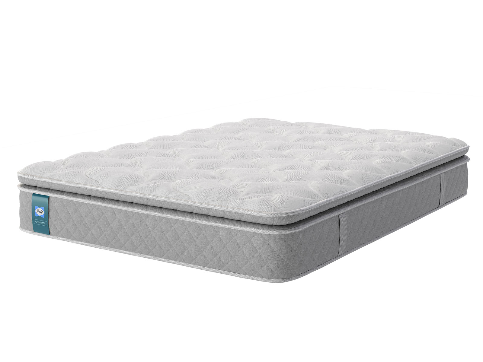 The Ashton mattress by Sealy sits at the top of the Enhance Collection and features a Gel-infused comfort layer, topped with a plush pillowtop for a
