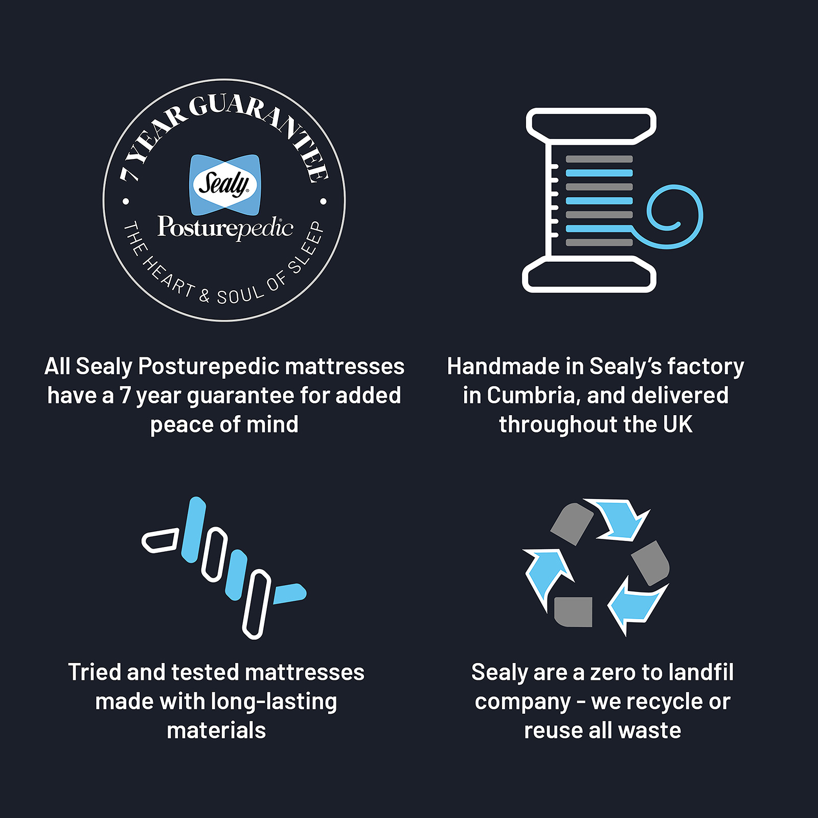 • Extra Firm Comfort Layers – Double layer of extra firm foams combined with Sealy’s firm comfort fillings for a robust, supportive feel that soothes the spine without being overly hard.
