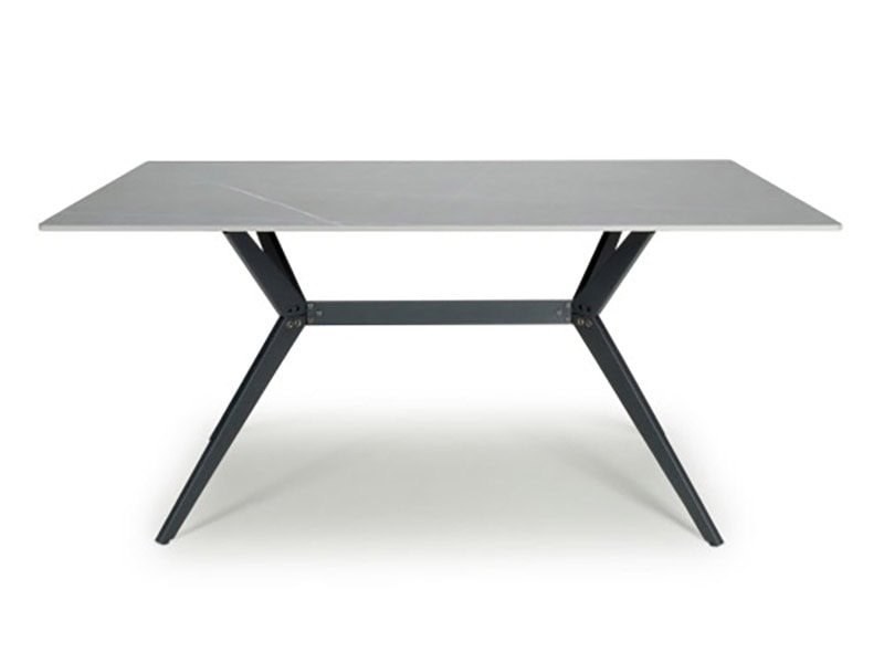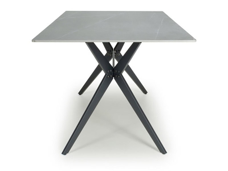 This trendsetting 1.6m sintered stone dining table is set off by fashionable diagonal criss cross markings. The sturdy 12mm thick ceramic table top comes in an attractive grey granite finish. Completed by stylish black powder coated metal X-frame legs. Assembly required. Sold individually.