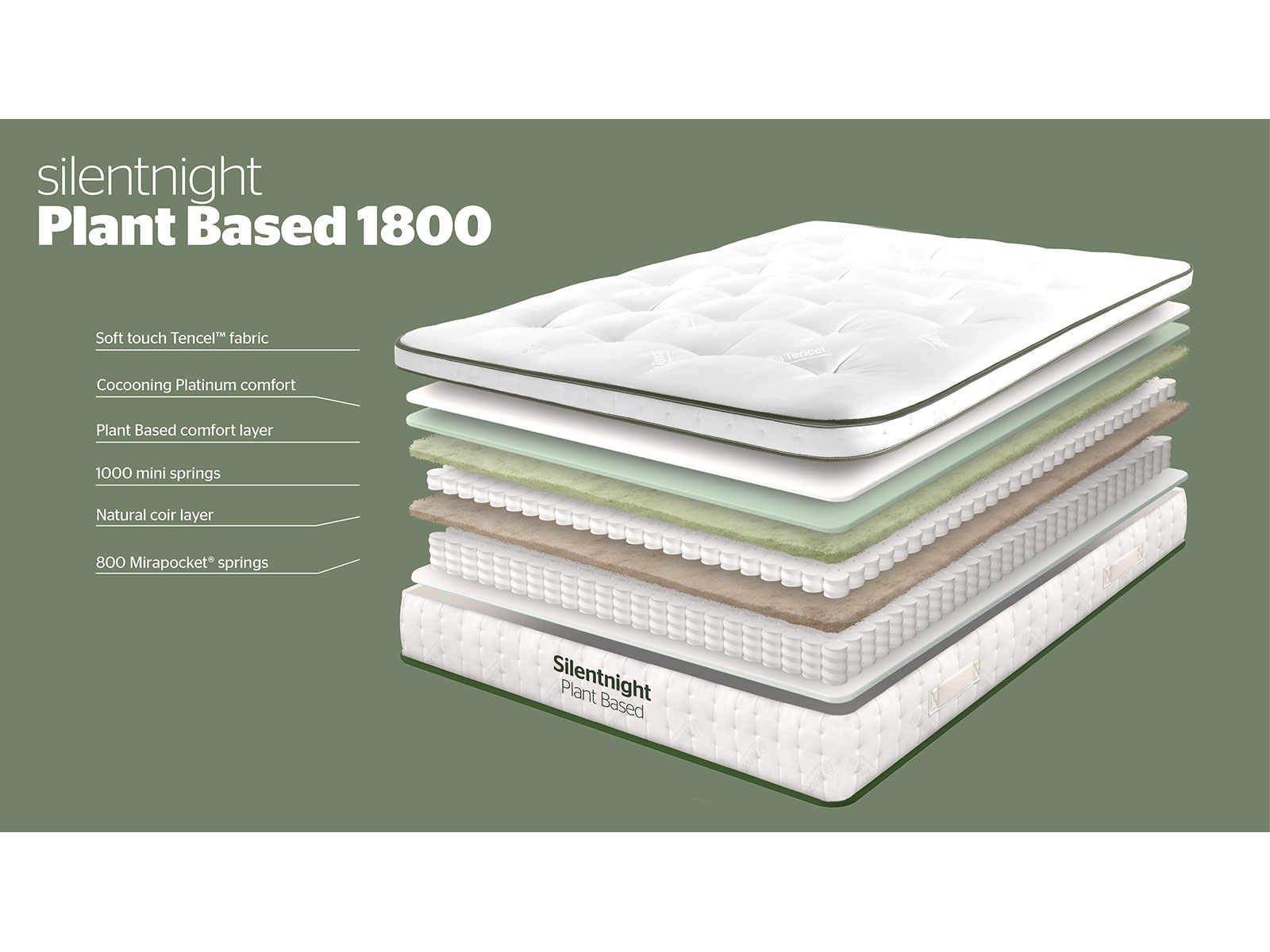 Engineered by nature. Silentnight’s Plant Based comfort layer does wonders for your sleep. It’s made using a combination of bamboo, kapok, flax and aloe vera; sustainably sourced from nature, then designed and adapted using Silentnight’s expertise in sleep research. Comfortable, breathable and hypoallergenic, we’ve harnessed all the sleep enhancing benefits that plant provides naturally. So however you sleep, you can sleep without compromise knowing nature’s got your back.
