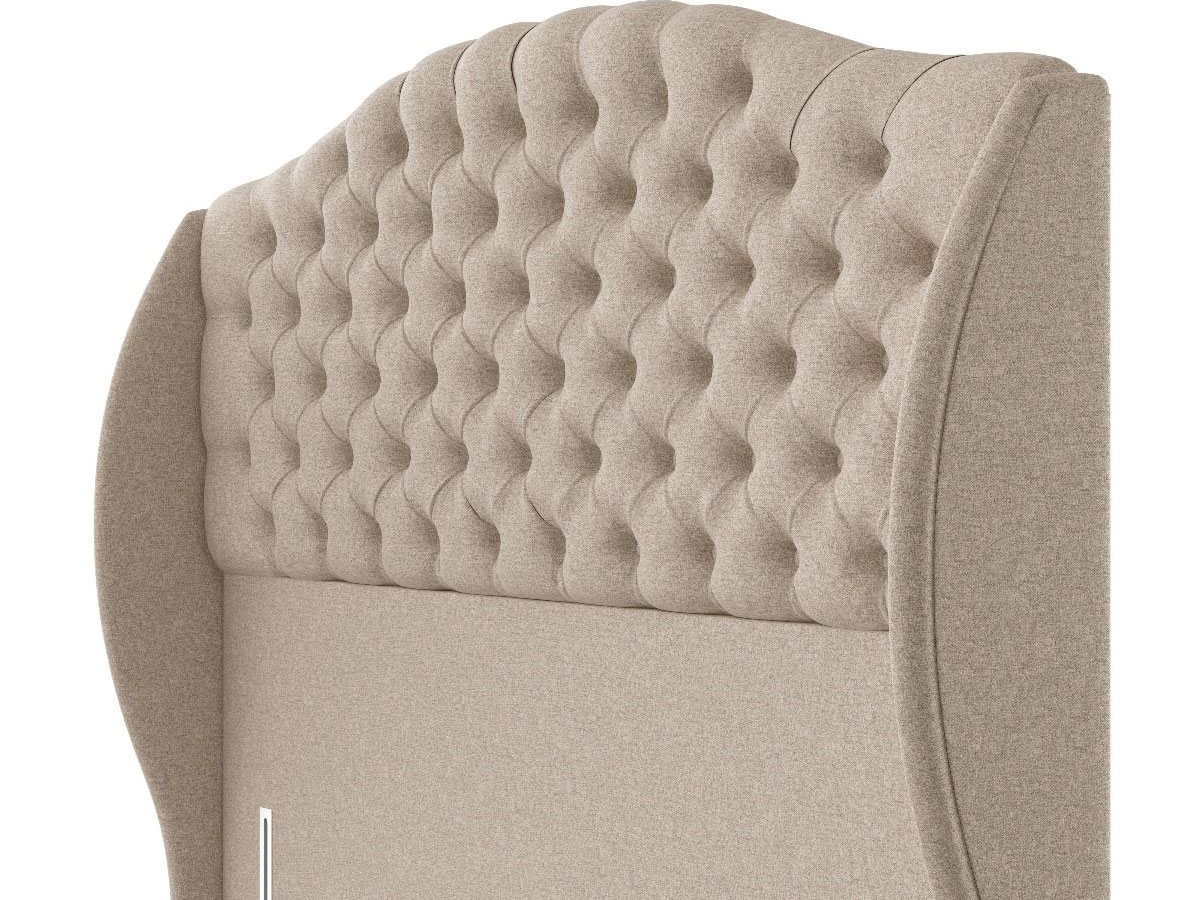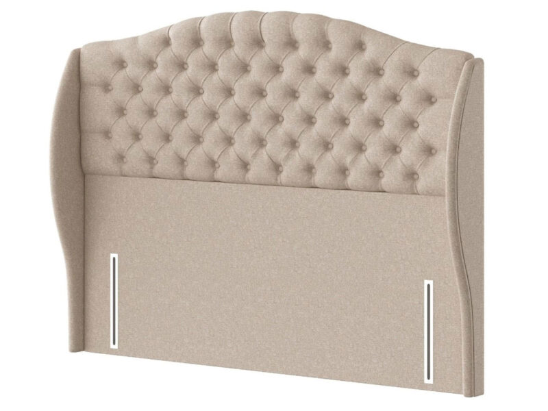 The Richmond floor standing headboard is the ultimate in sleek design and will suit almost any bedroom. A full height headboard with curved lines, tufted buttons, and a winged profile.
