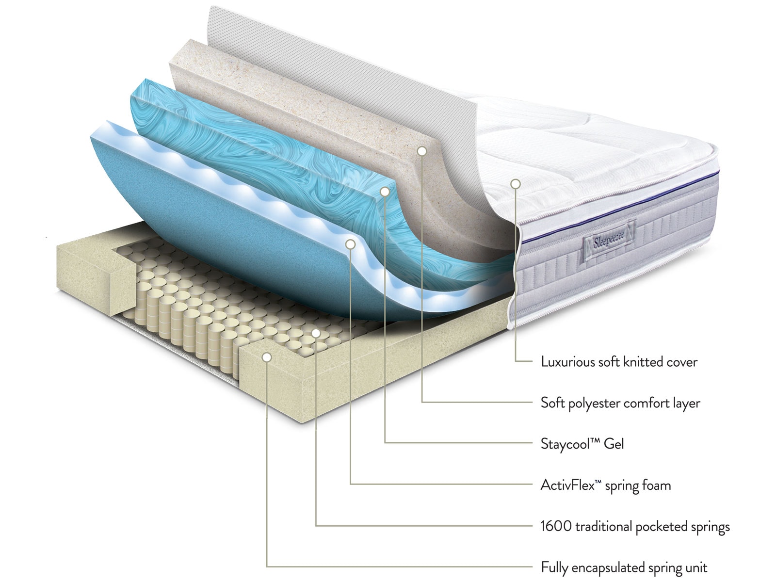 Expertly designed for those seeking firmer support, the ActivFlex 1600 is handcrafted with layers of contouring ActivFlex™ Spring Foam and breathable Staycool™ Gel. ActivFlex™ Spring Foam takes all the benefits of pocket springs and foam, combining them to create a unique comfort layer which adapts and flexes to each unique body shape and movements during sleep.