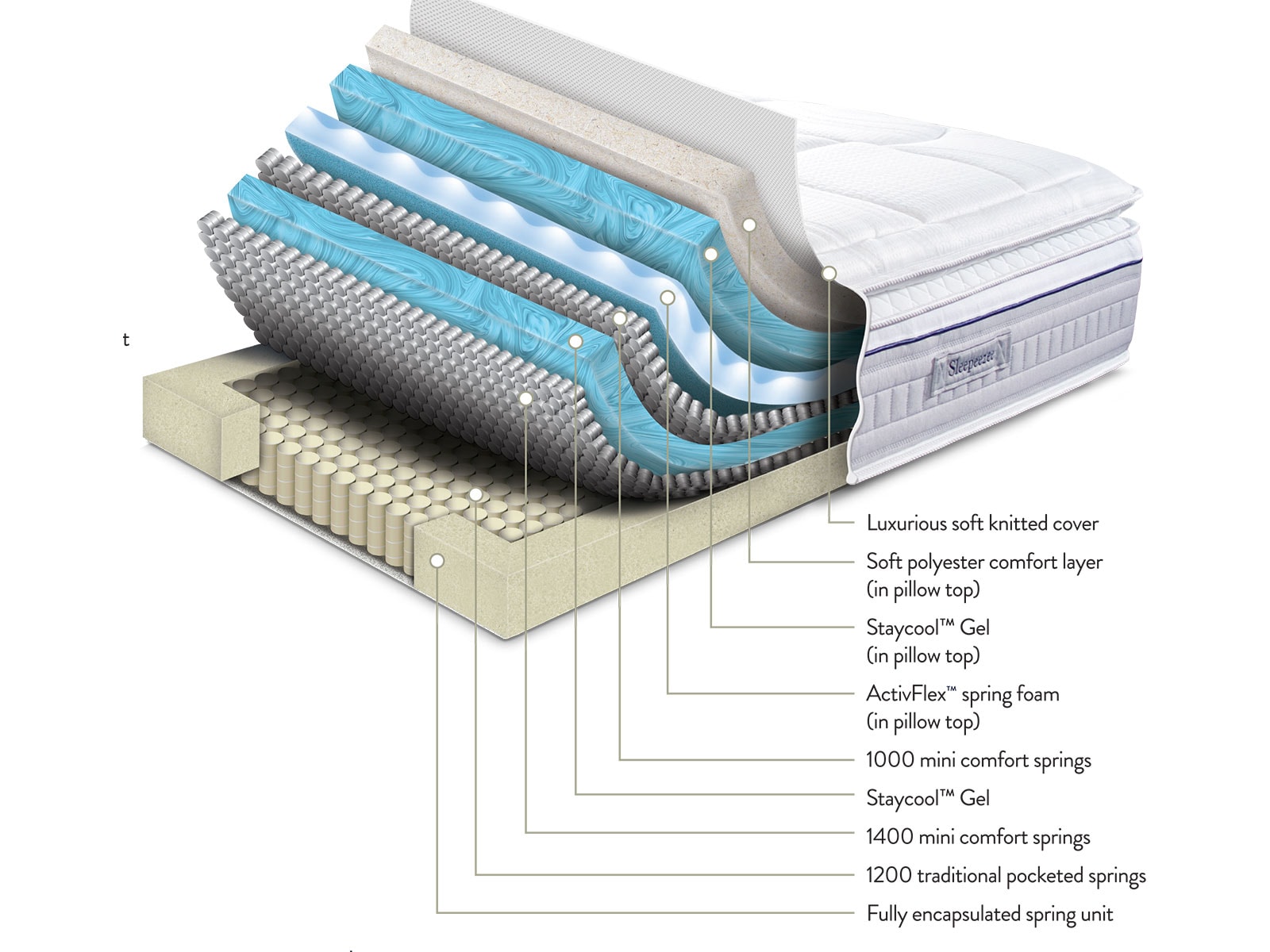 Expertly designed for those seeking firmer support, the ActivFlex 1600 is handcrafted with layers of contouring ActivFlex™ Spring Foam and breathable Staycool™ Gel. ActivFlex™ Spring Foam takes all the benefits of pocket springs and foam, combining them to create a unique comfort layer which adapts and flexes to each unique body shape and movements during sleep.