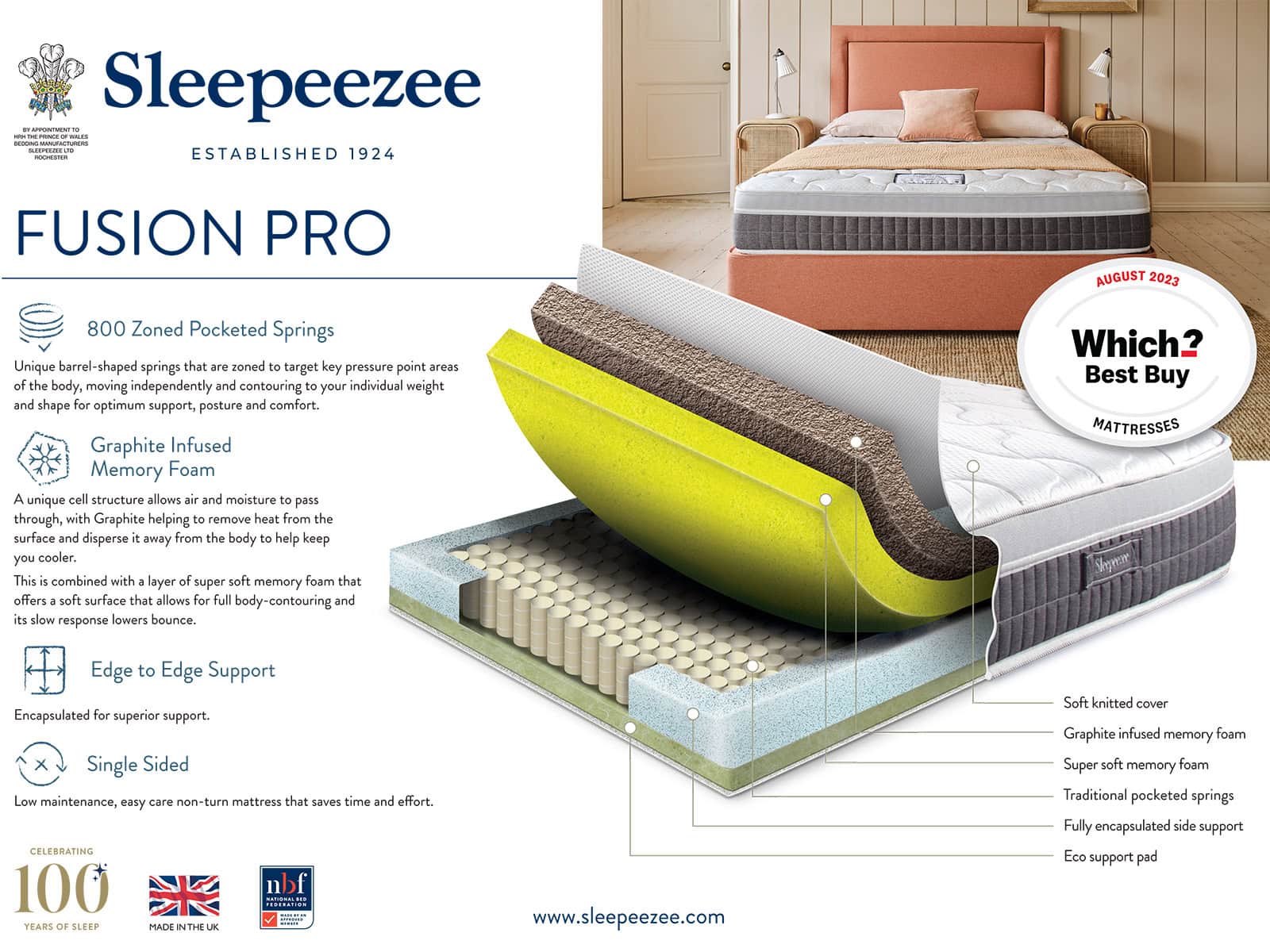 The Sleepeezee Fusion Pro Mattress has the following features: