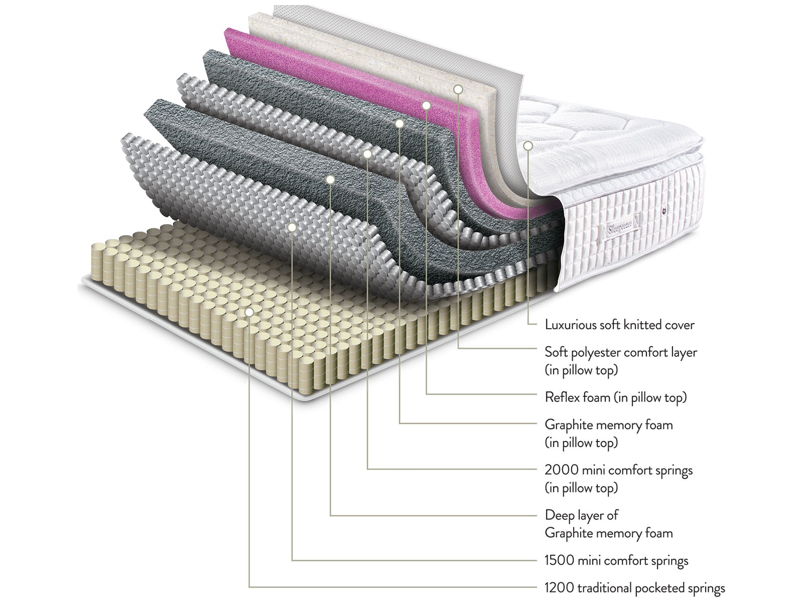 A denser support layer that works in harmony with the Graphite Memory Foam and pocket springs for enhanced support