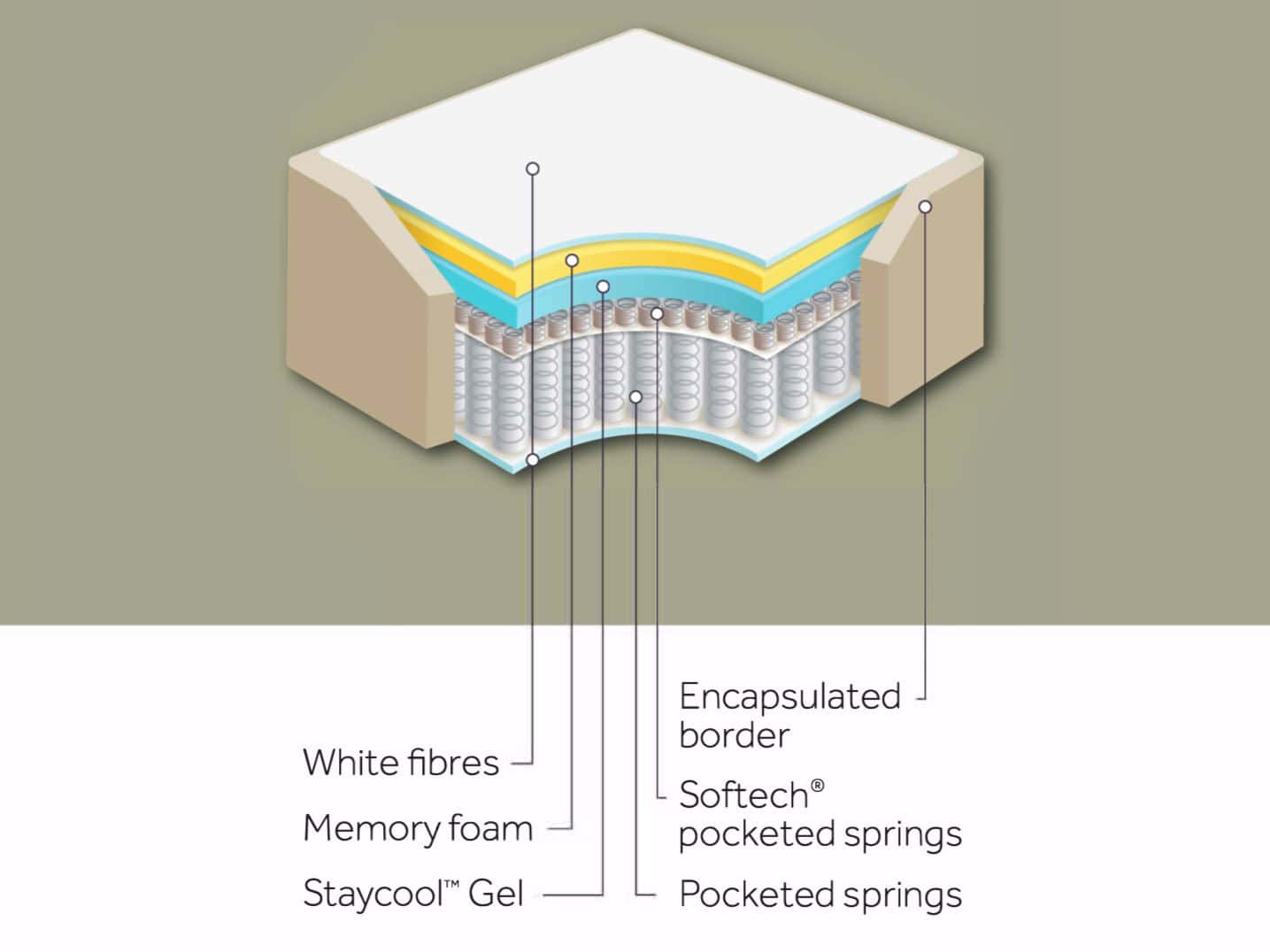 A combination of Softech® and traditional pocketed springs that move independently, contouring to your body for optimum support and posture.