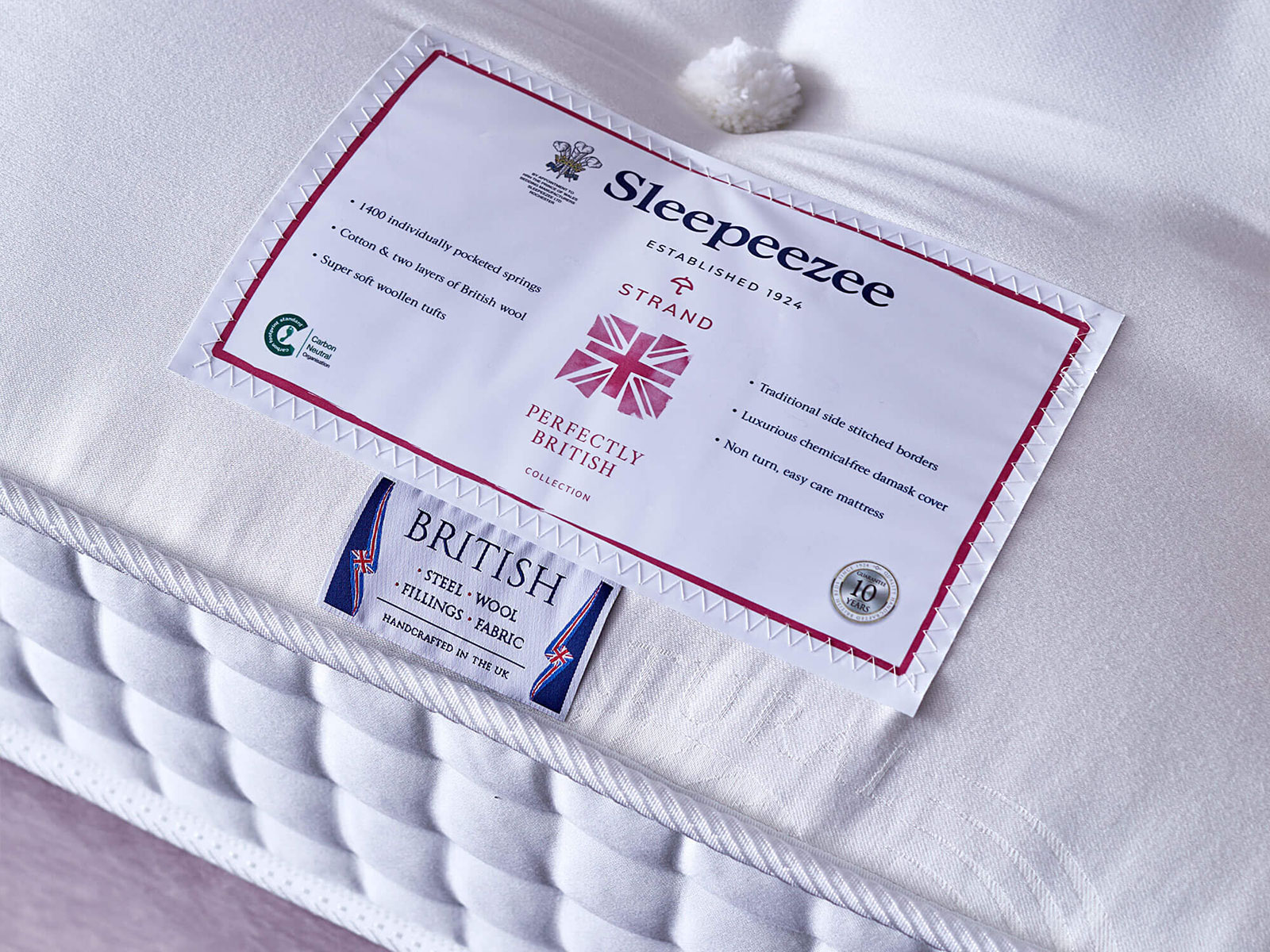 Part of Sleepeezee’s Perfectly British range, the Strand 1400 is handmade in the UK from natural materials, including two layers of 100% British wool.