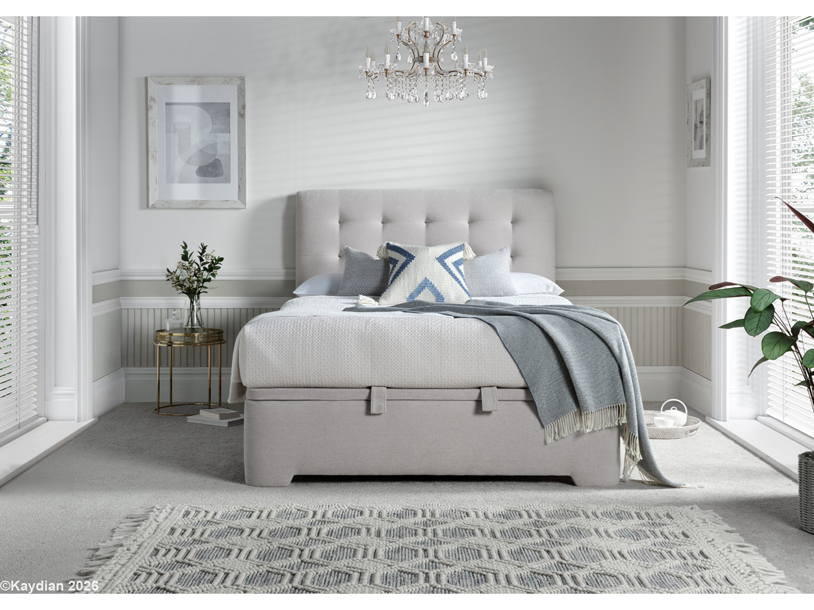The Kaydian Ashgrove Ottoman Bed in Maskat Clay fabric brings classic elegance and intelligent storage together, creating a timeless focal point for any bedroom.