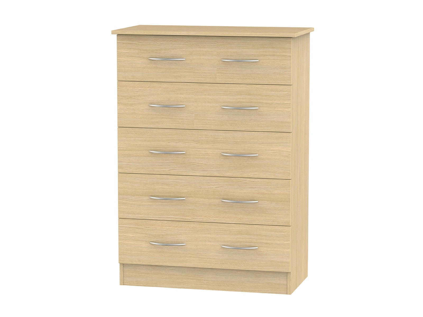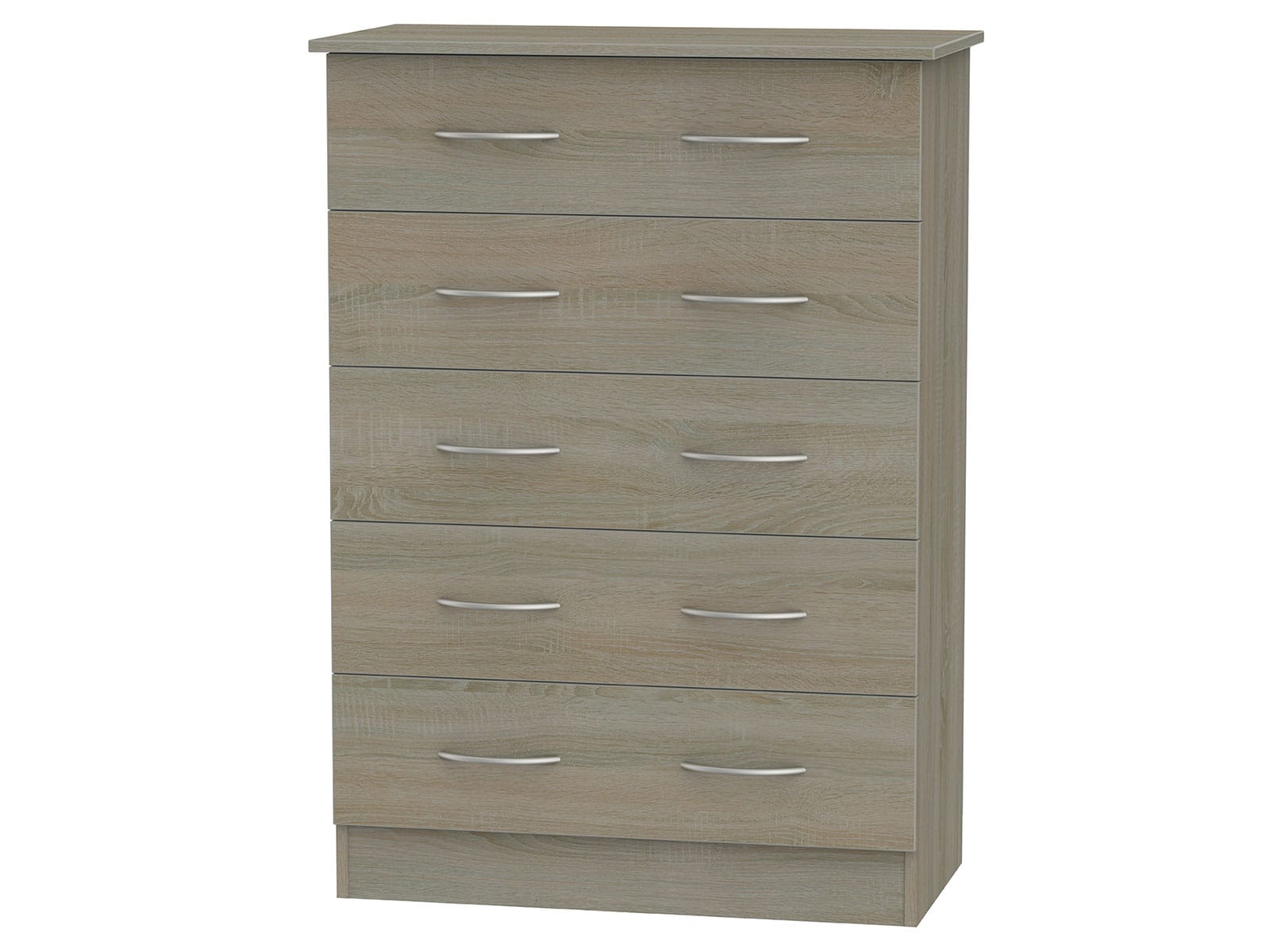 -10%This wide 5 drawer chest of drawers is practical and stylish. Perfect for any home as a free standing storage unit.