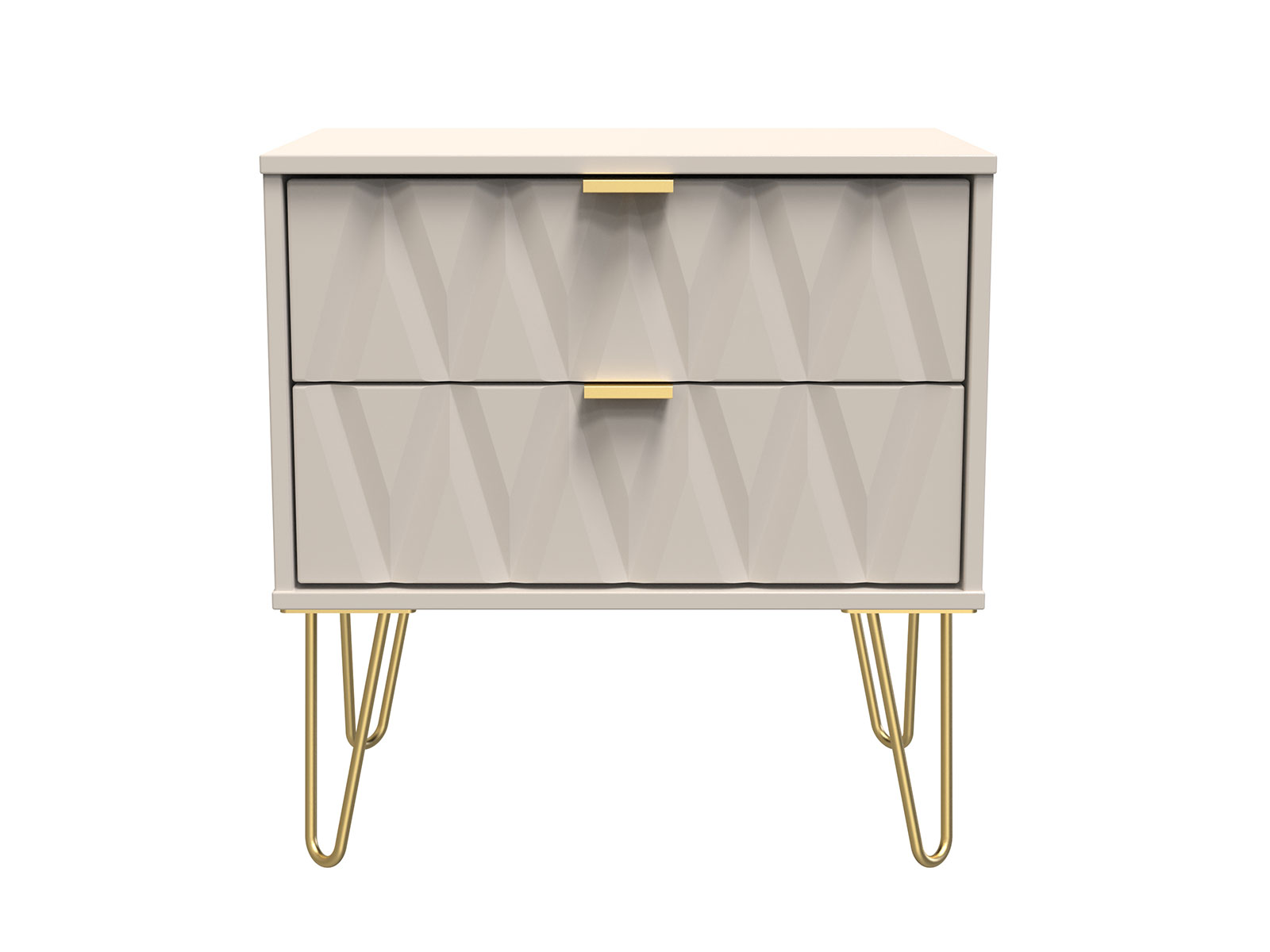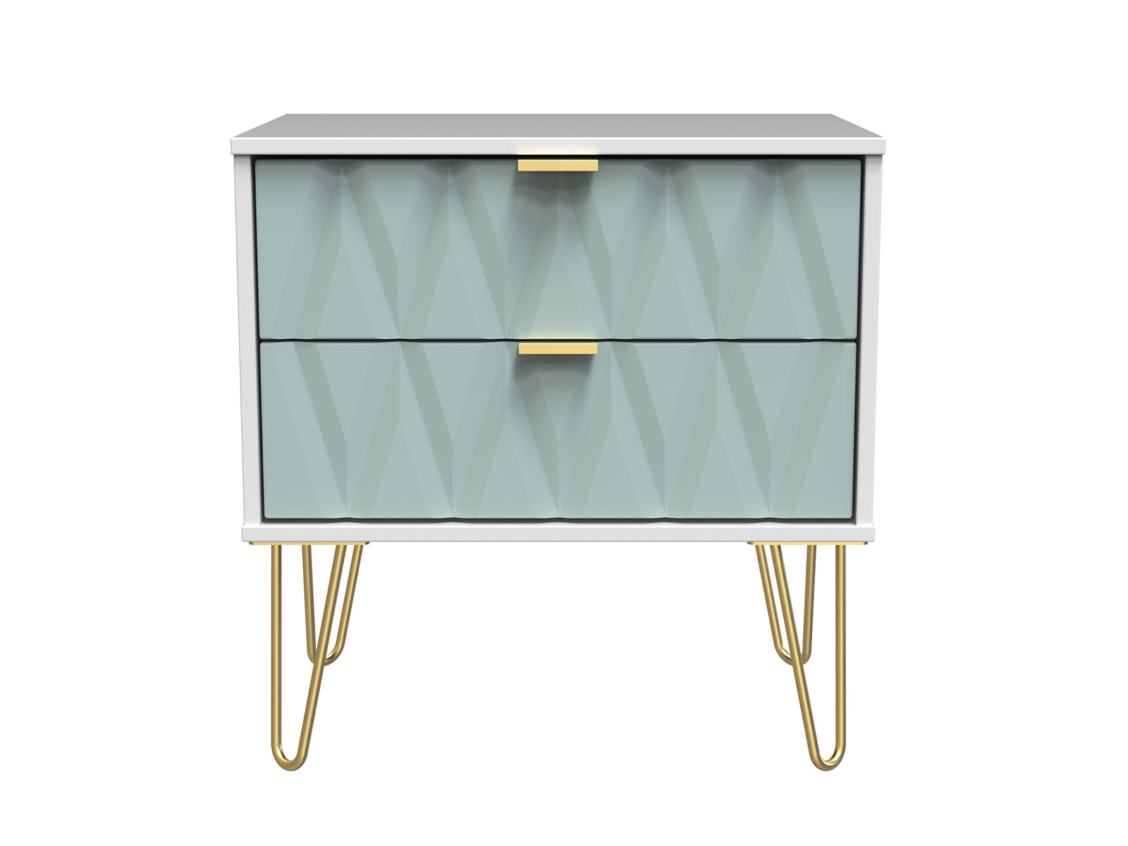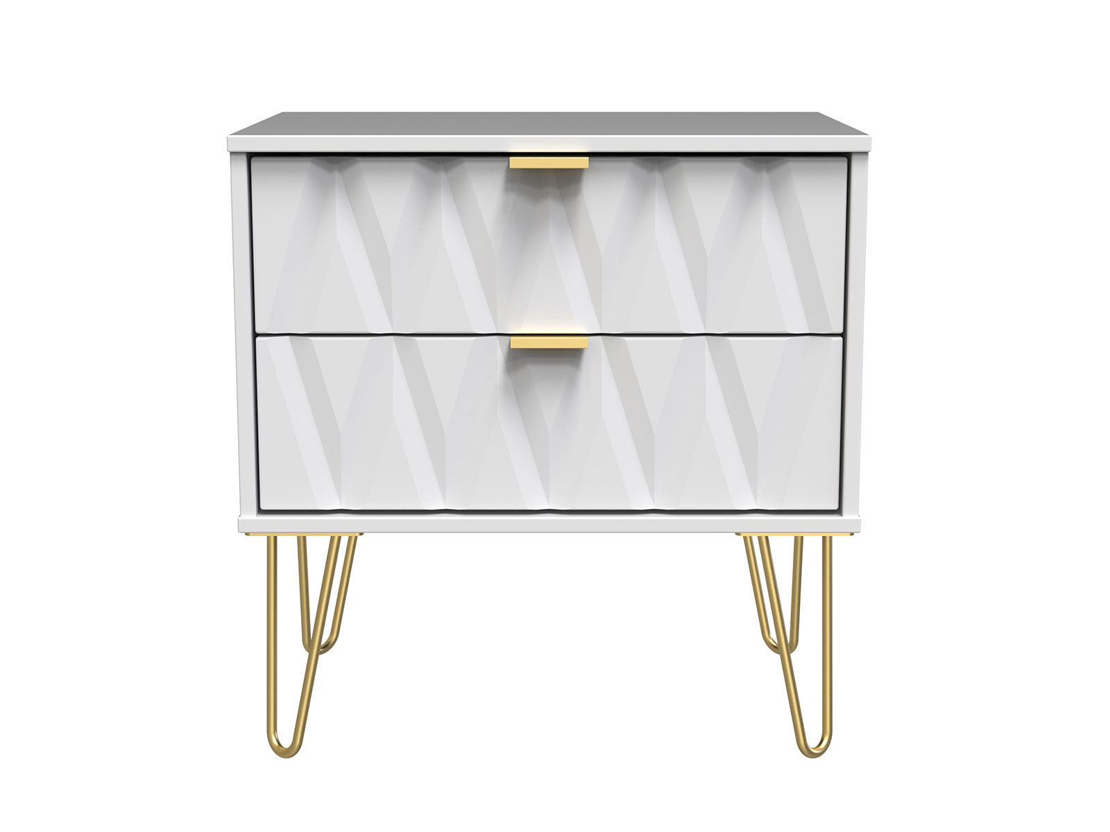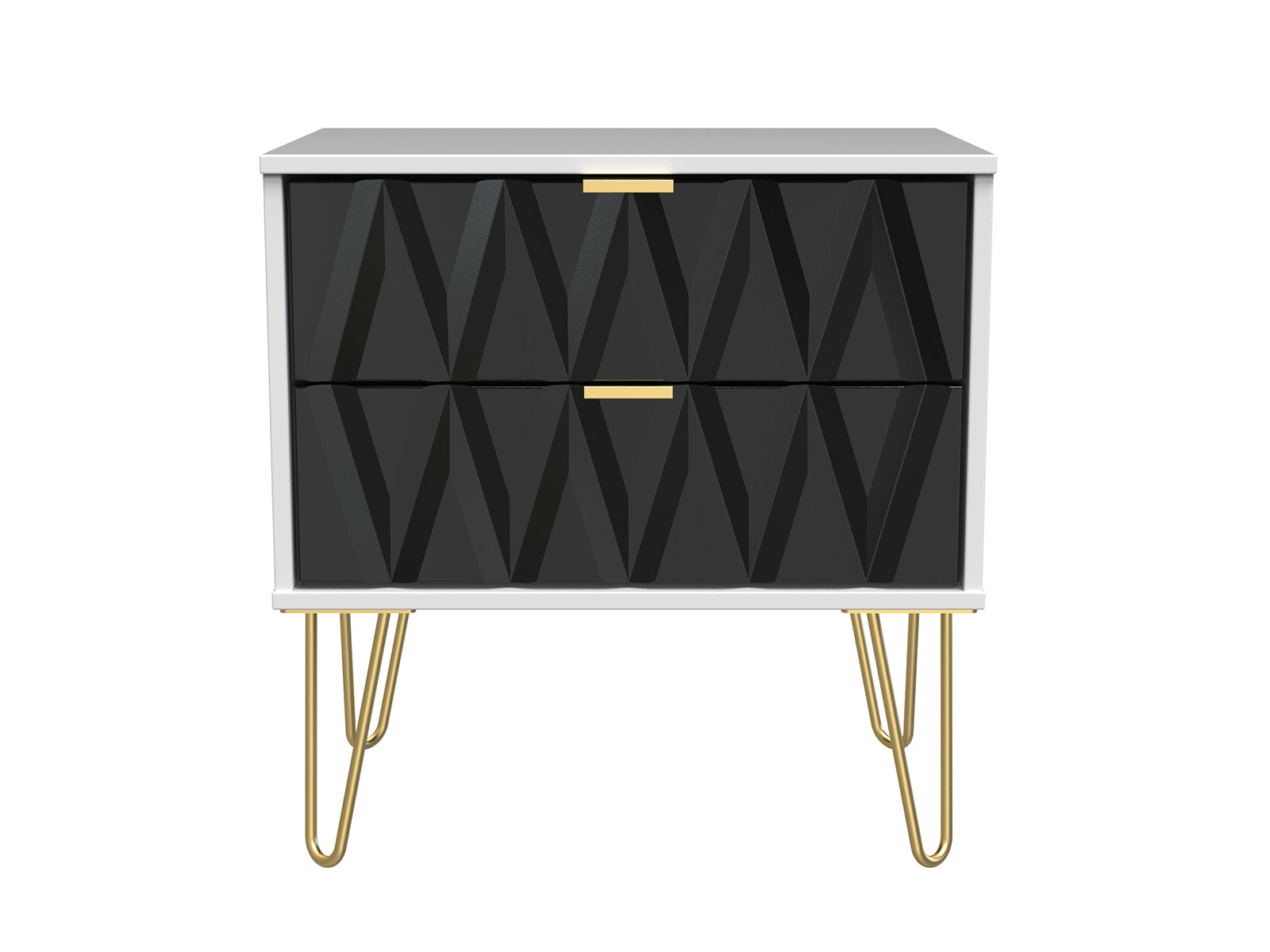 Say hello to contemporary cool with the Diamond range, with distinctive patterned drawers and a variety of colour options available to complement any interior design. Gold metal handles and sturdy hairpin legs complete the storage solution.