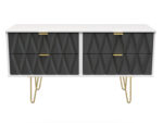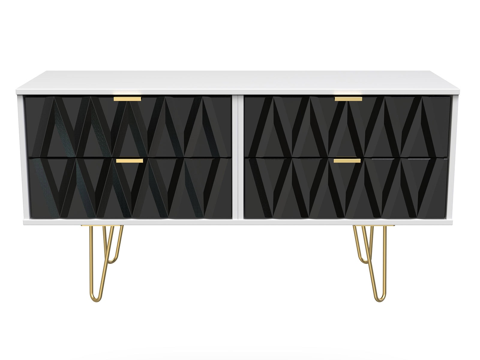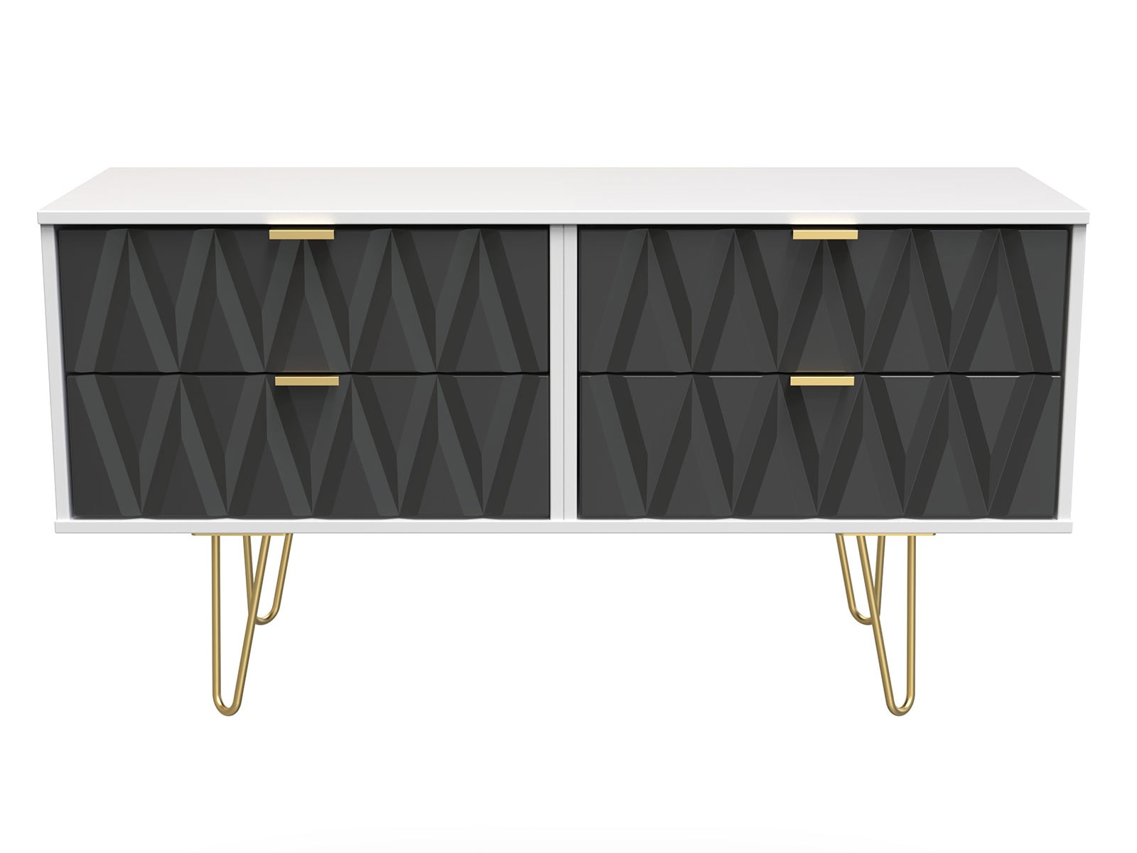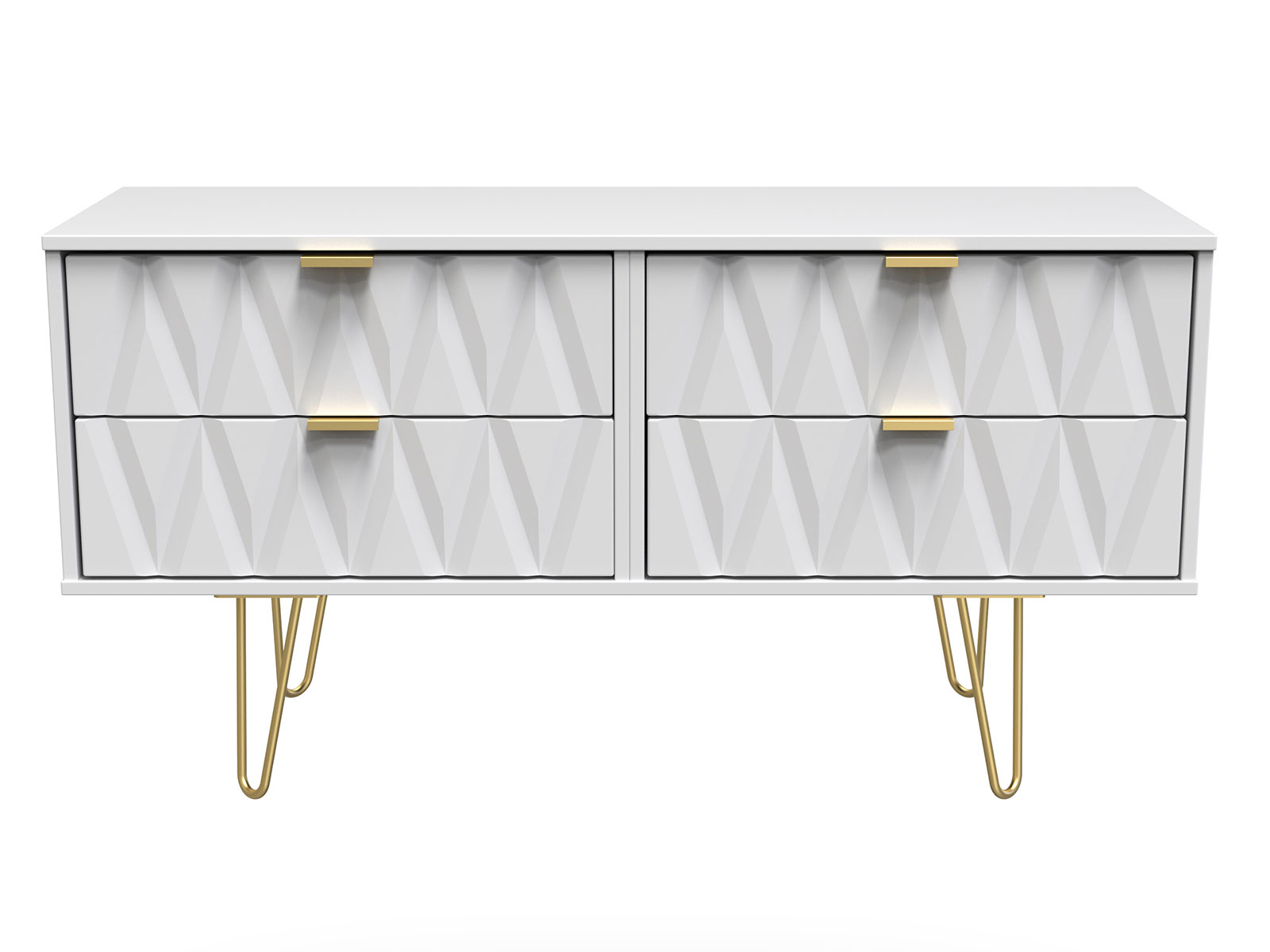 Say hello to contemporary cool with the Diamond range, with distinctive patterned drawers and a variety of colour options available to complement any interior design. Gold metal handles and sturdy hairpin legs complete the storage solution.