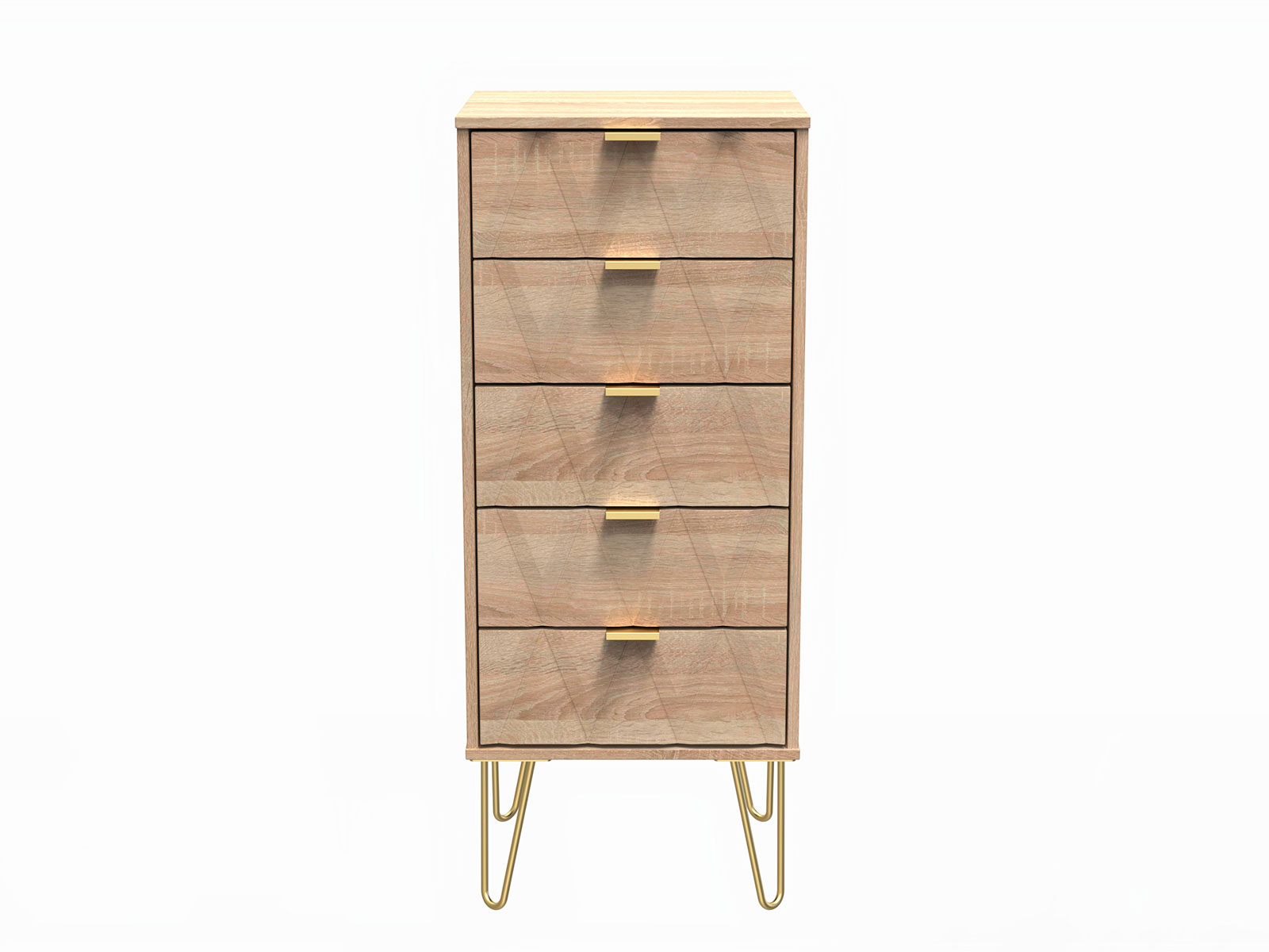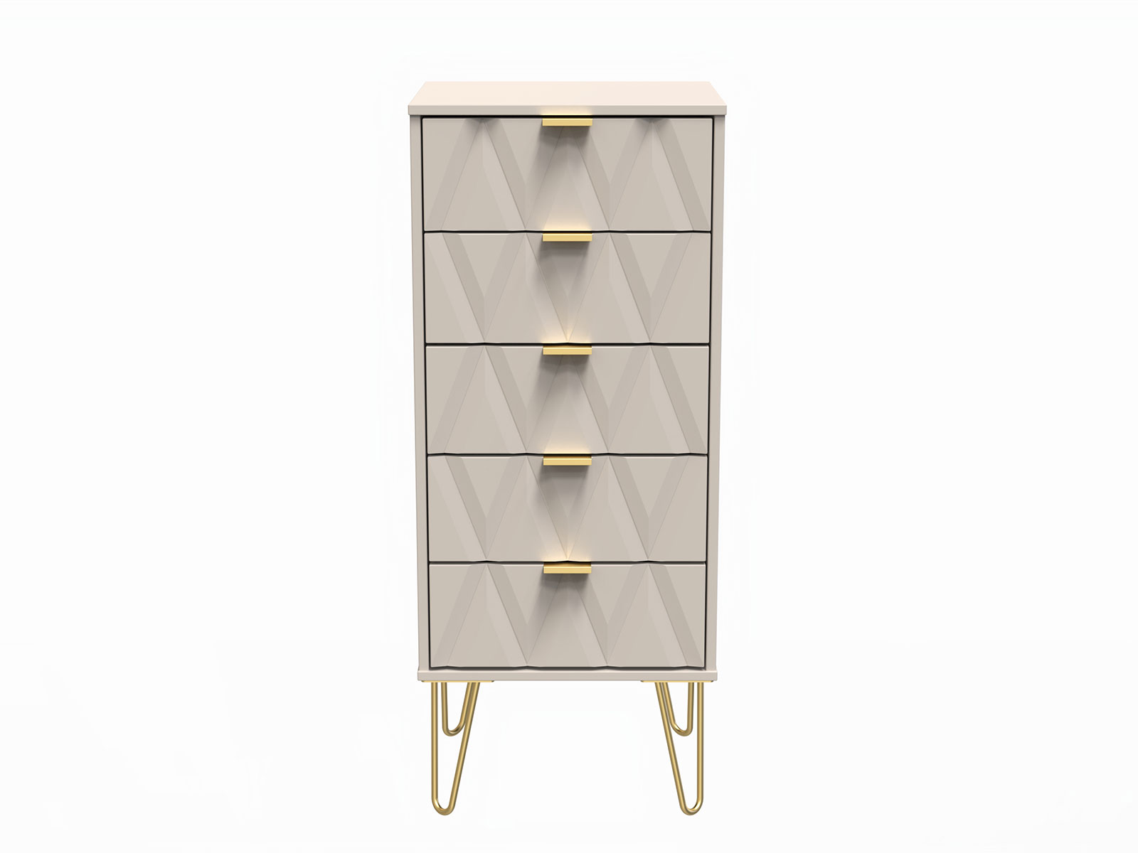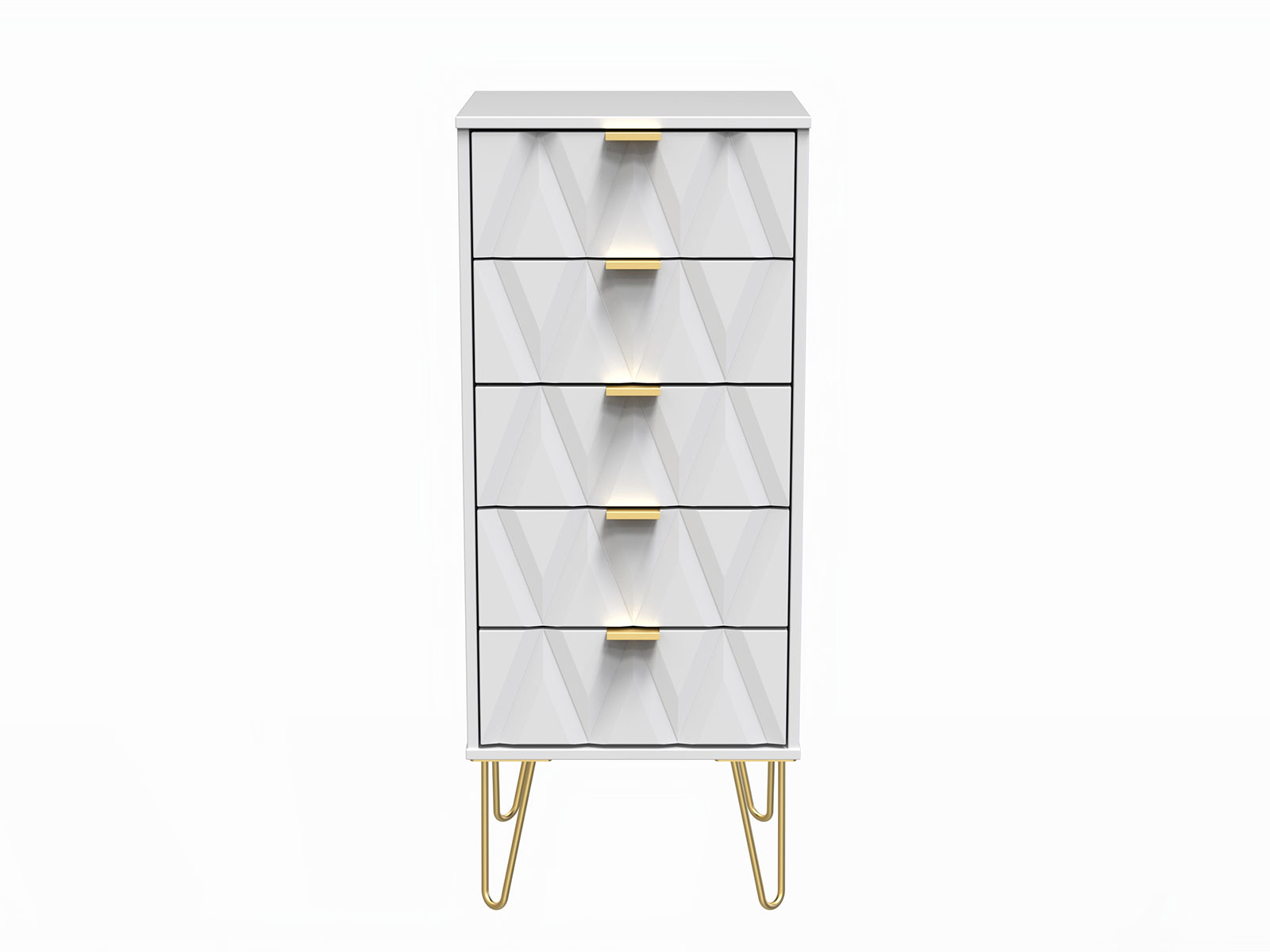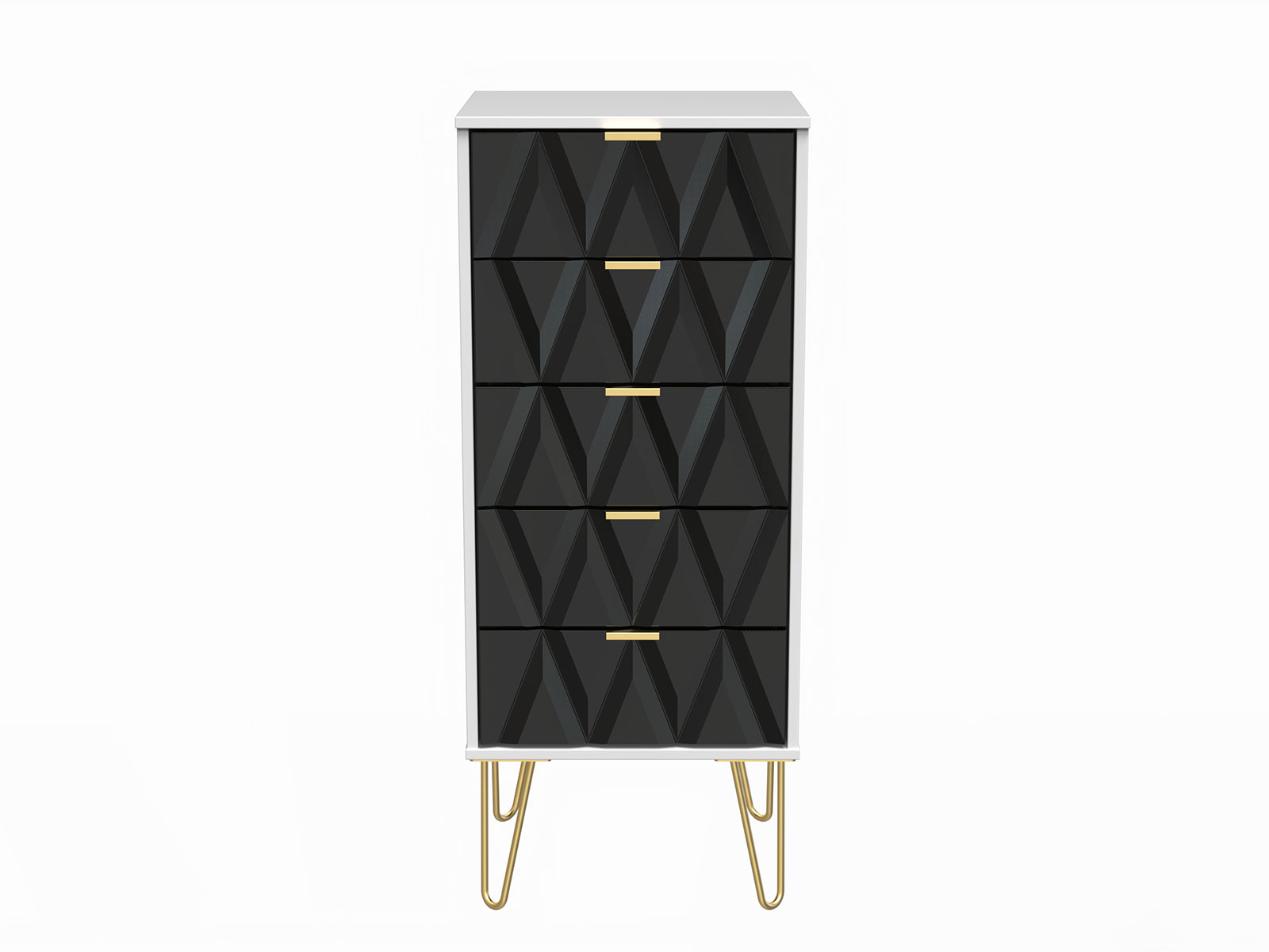Say hello to contemporary cool with the Diamond range, with distinctive patterned drawers and a variety of colour options available to complement any interior design. Gold metal handles and sturdy hairpin legs complete the storage solution.