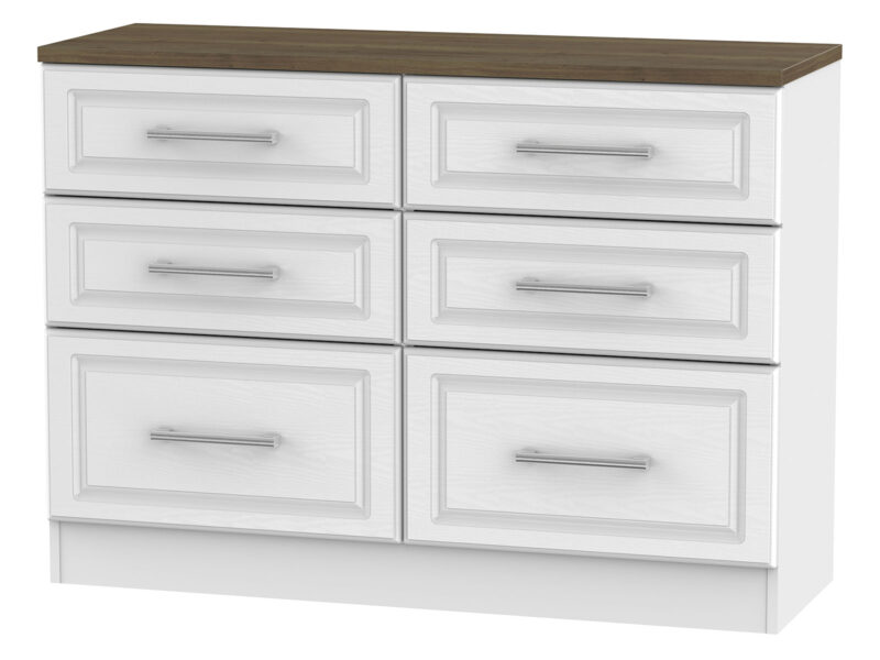 The Kent Collection is a traditional range of bedroom furniture, available with a White Ash finish with contrasting stirling oak tops. To complete the look all pieces are finished with high quality handles