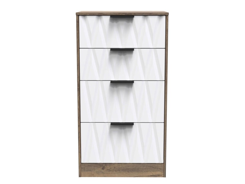 Introducing the delightful Las Vegas range, a stunning piece of furniture designed to elevate your bedroom decor. With its sophisticated charm, this range boasts a captivating aesthetic, featuring diamond patterns on the drawer fronts. The intricate diamond motifs, elegantly carved with precision, create a mesmerizing visual effect that catches the eye. This range is built to last, ensuring both durability and timeless beauty. Its spacious drawers provide ample storage for your clothing and essentials, while the diamond-patterned facade adds a touch of opulence to any bedroom.