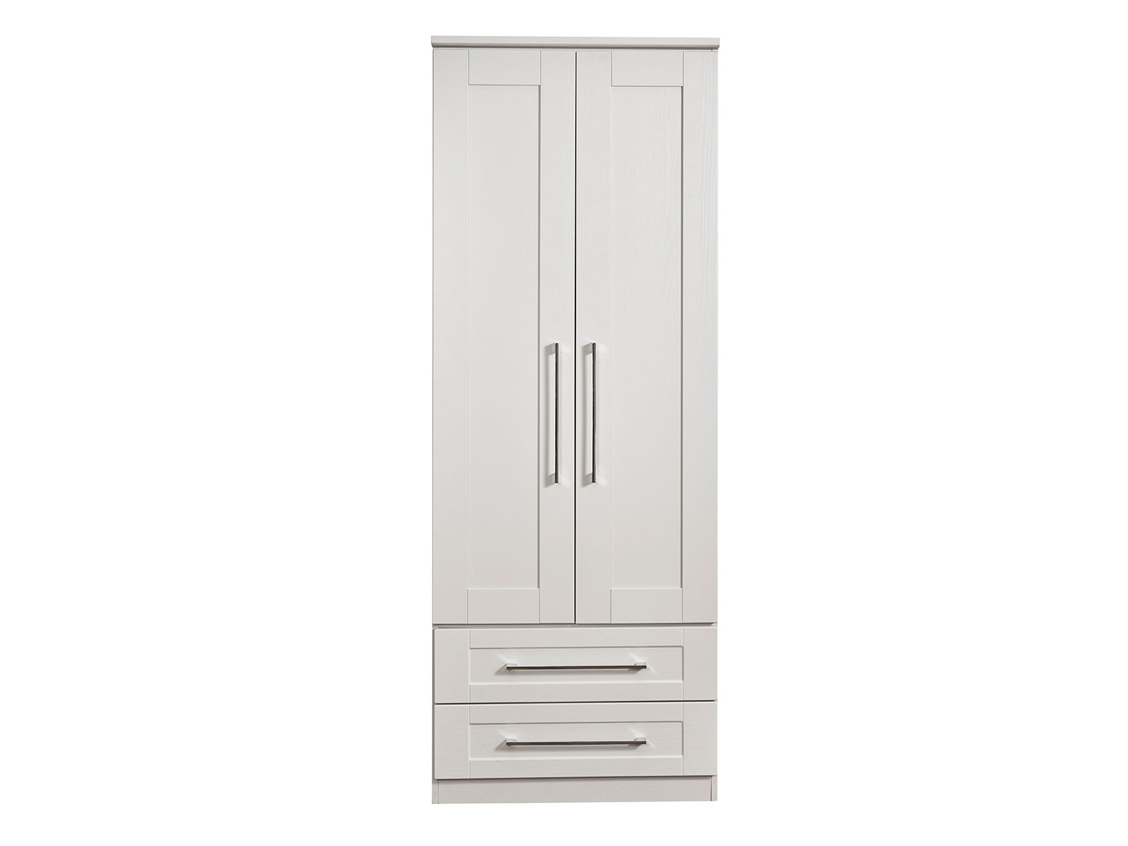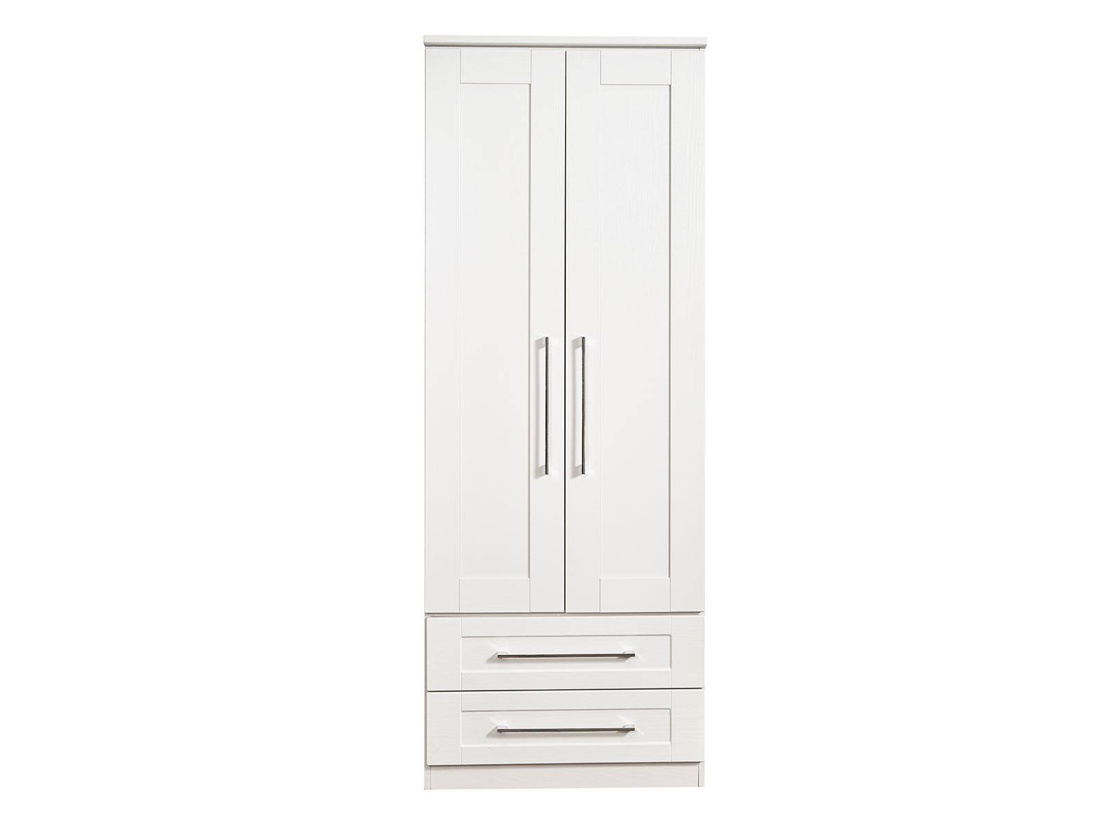 This tall double door wardrobe is perfect for any bedroom. Features the added practicality of 2 full width drawers.