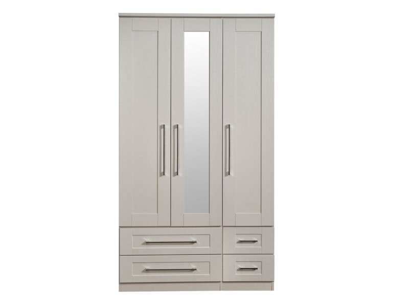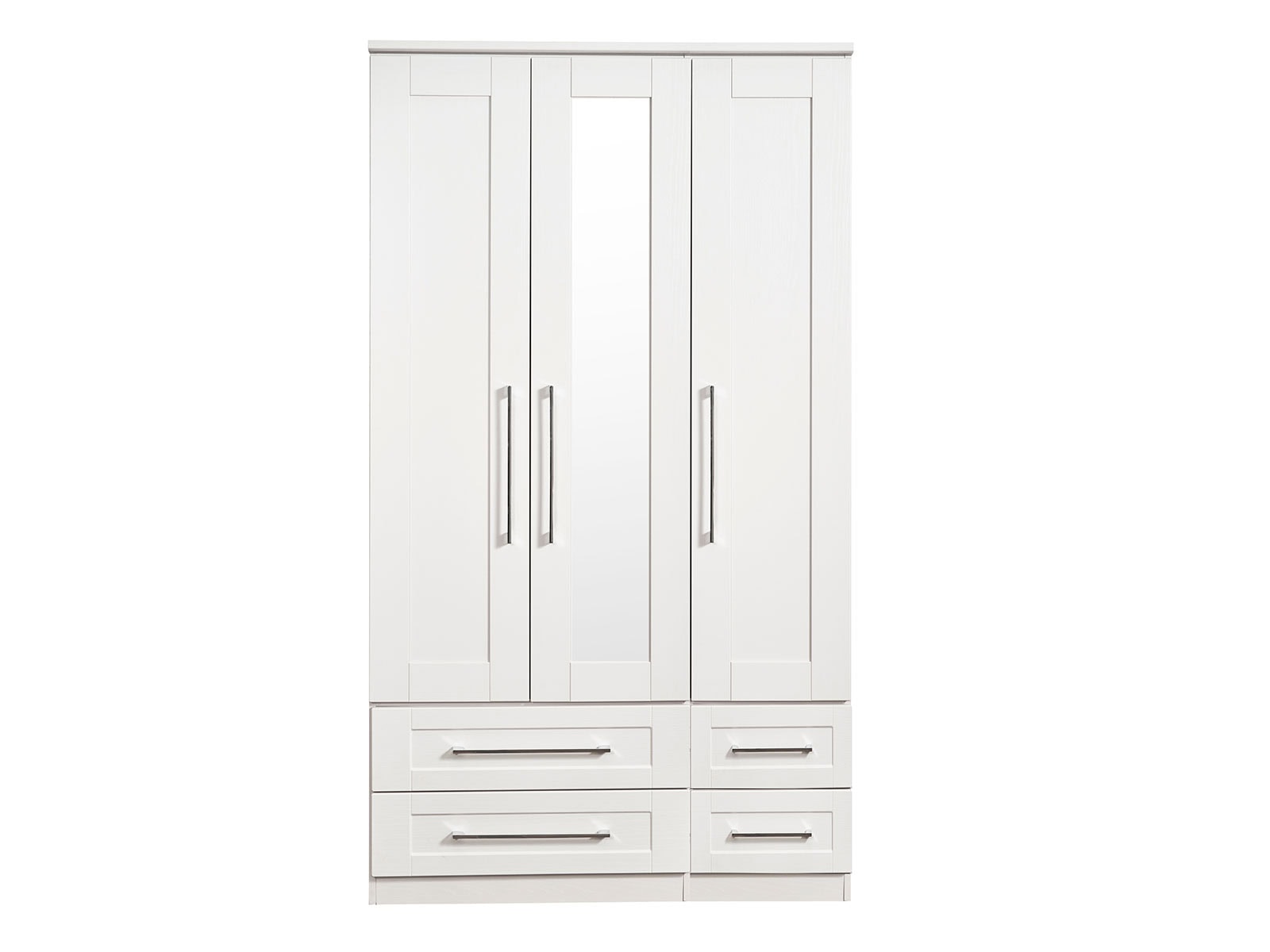 -10%This tall triple 3 door wardrobeis perfect for any bedroom when a normal wardrobe is just not large enough. Also features 2 narrow and 2 wide storage drawers for added practicality.